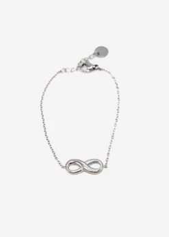 Feines Armkettchen mit dem Unendlichkeitssymbol. Das Armband ist mit Karabinerverschluss ausgestattet. Es ist auch in gold erhältlich.