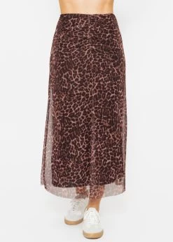 Ausgestellter Mesh-Rock mit Leo-Print in Braun
