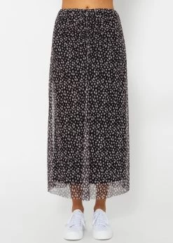 Ausgestellter Mesh-Rock mit Print in Schwarz