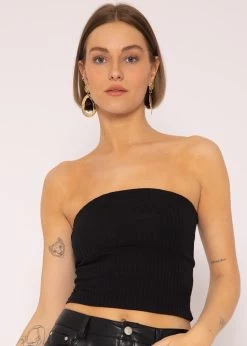 Bandeau Top mit Struktur in schwarz