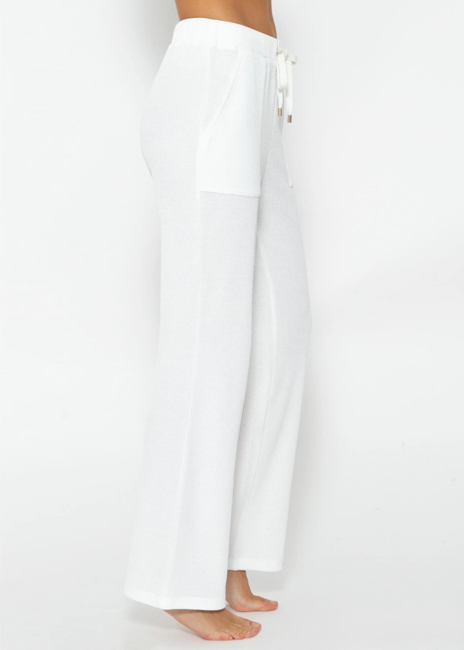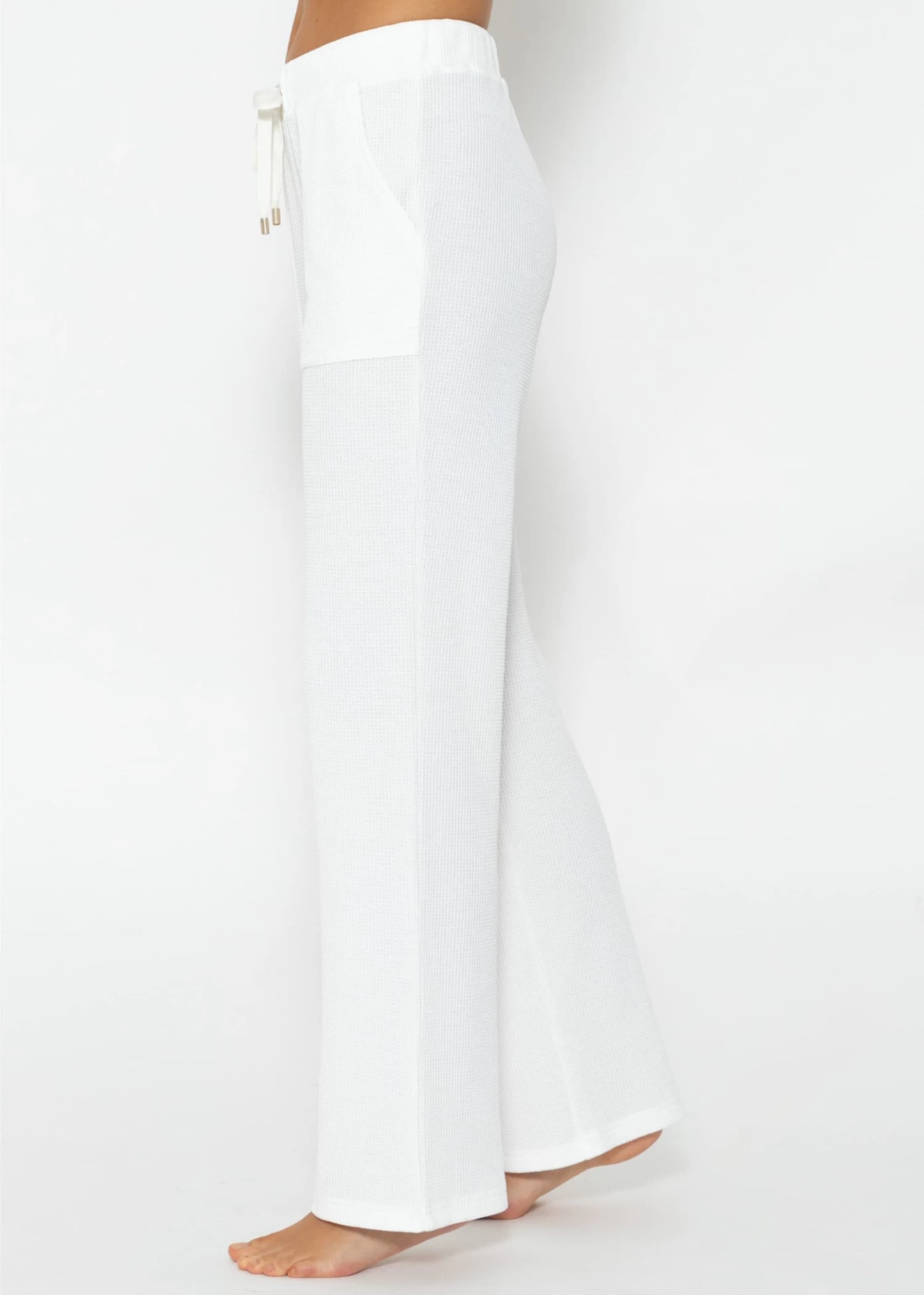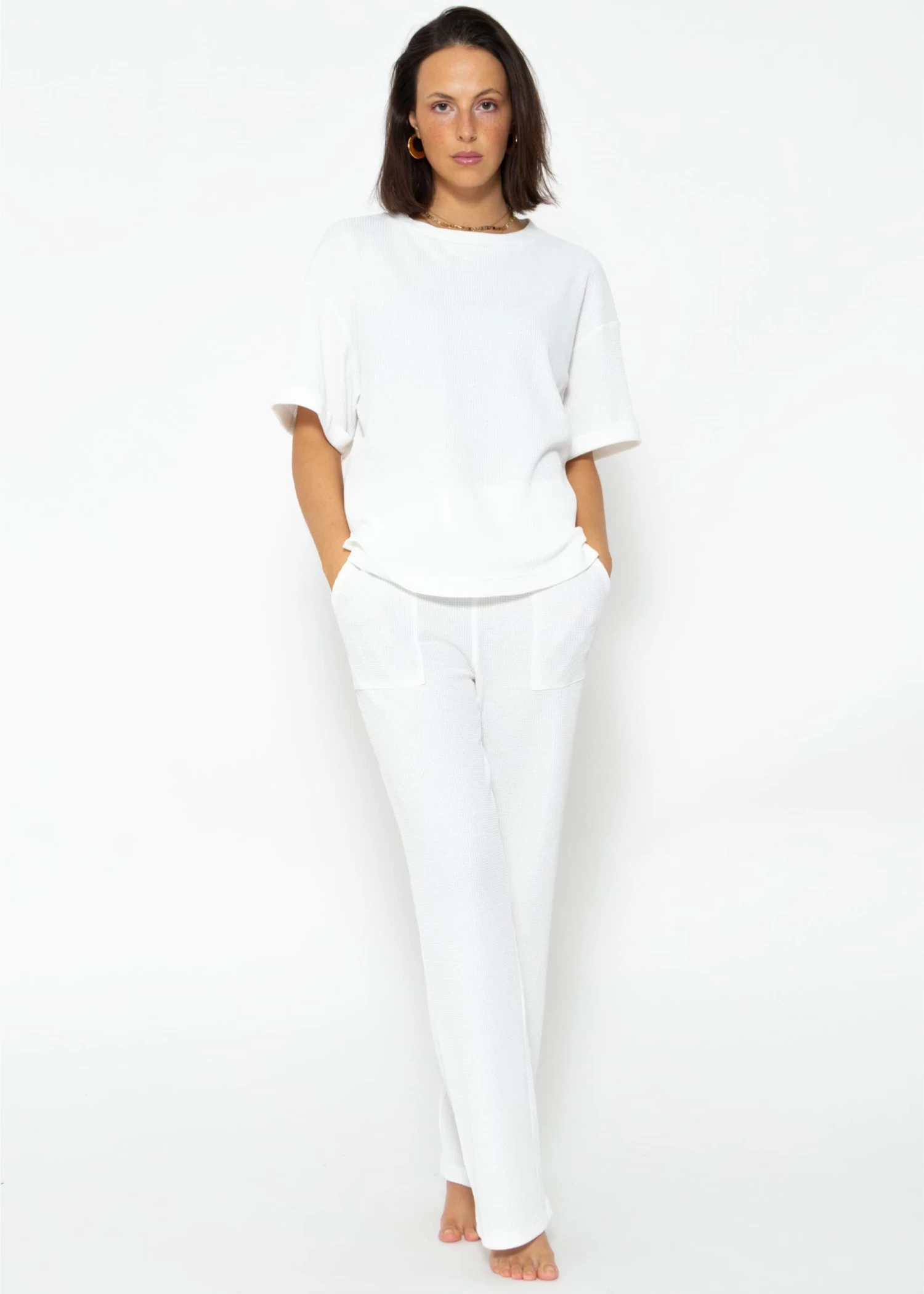 Dieses Modell präsentiert sich in einer lockeren Passform, mit einem elastischen Gummibund sowie mit weitem Bein. Praktische Einschubtaschen und Bindebänder geben der Hose einen sportiven Look und bieten gleichzeitig Funktionalität. Das hochwertige Waffelpiqué sorgt für eine ansprechende Struktur und garantiert höchsten Tragekomfort. Für einen entspannten Set-Look kannst du die passende Bluse zu dieser Hose kombinieren.