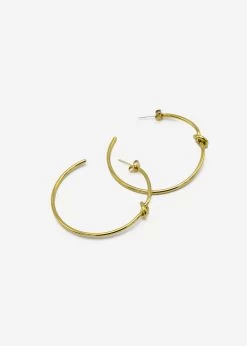 Entdecke die harmonische Verbindung von filigraner Eleganz und modernem Design mit diesen goldfarbenen Creolen. Sie sind angenehm leicht zu tragen und daher perfekt für den alltäglichen Gebrauch. Sie präsentieren ein offenes, zartes Design. Highlight des Ohrrings bildet der kleine Knoten in der Mitte der Creole, der Individualität und Eleganz symbolisiert und dem Ohrring seinen einzigartigen Ausdruck verleiht.