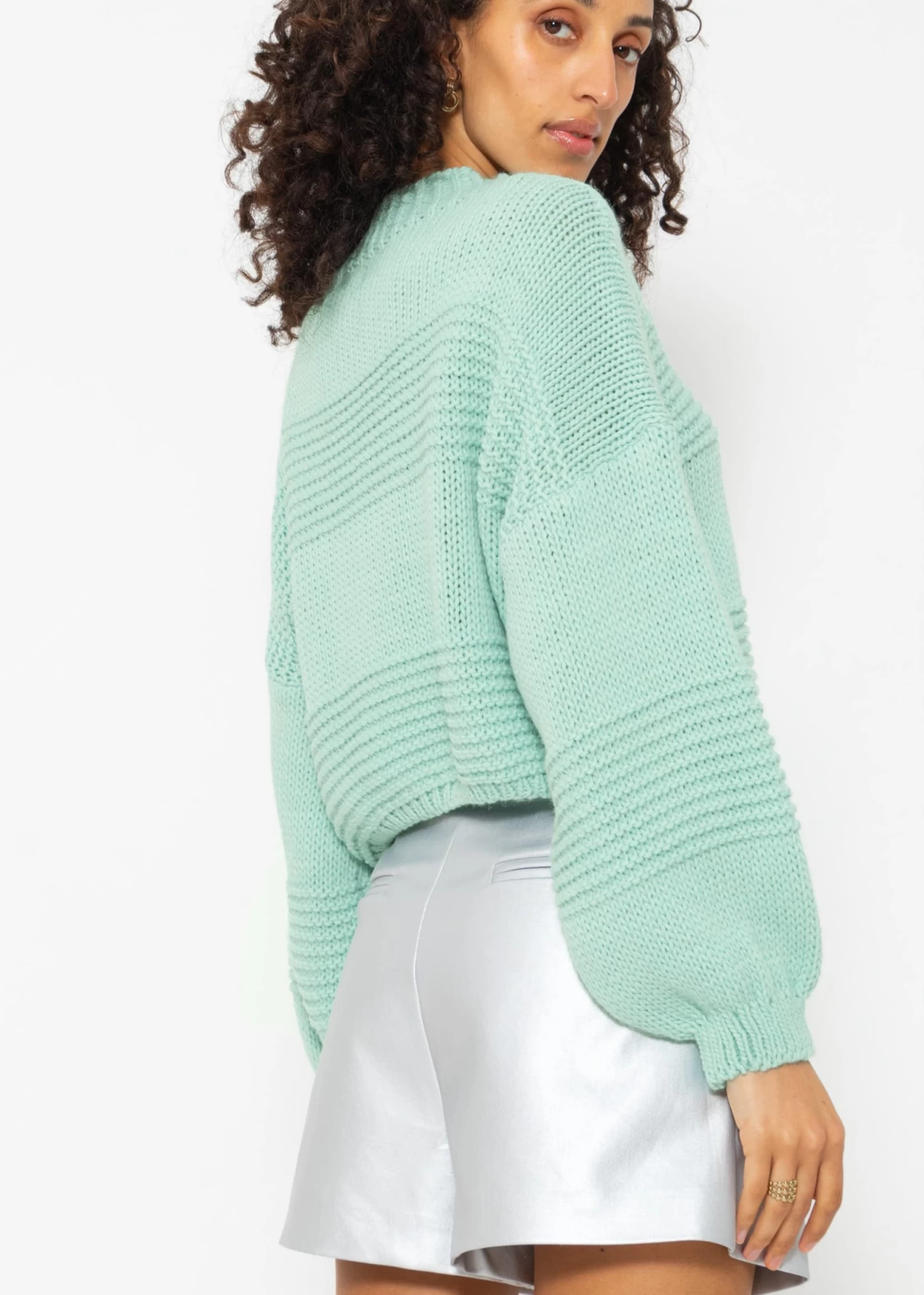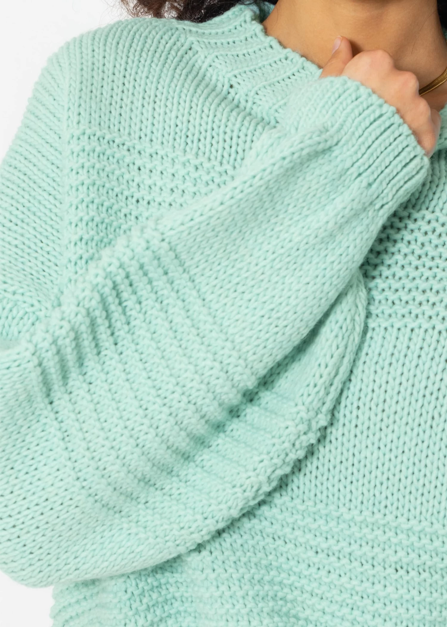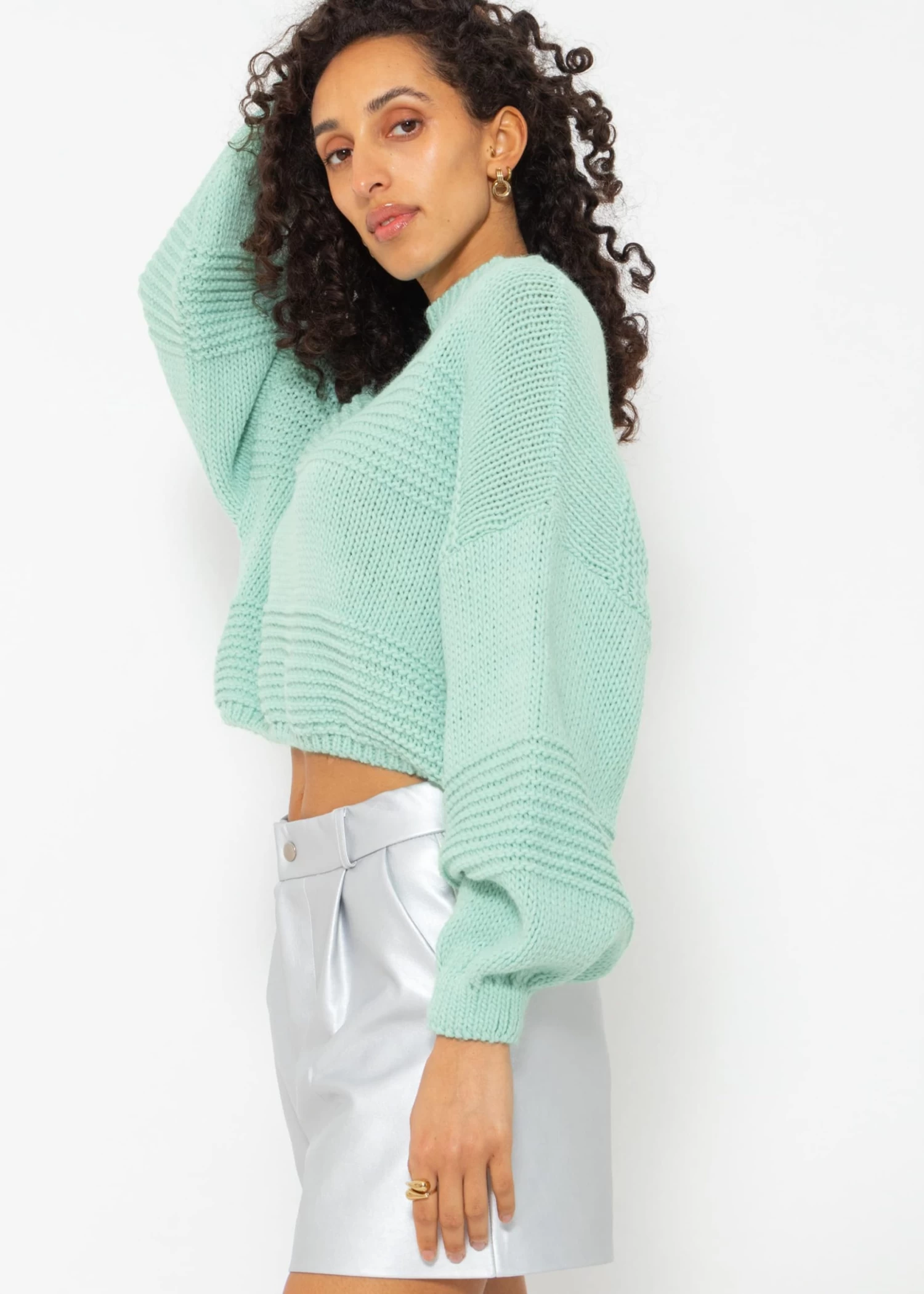 Crop Strickpullover mit Textur in Türkis