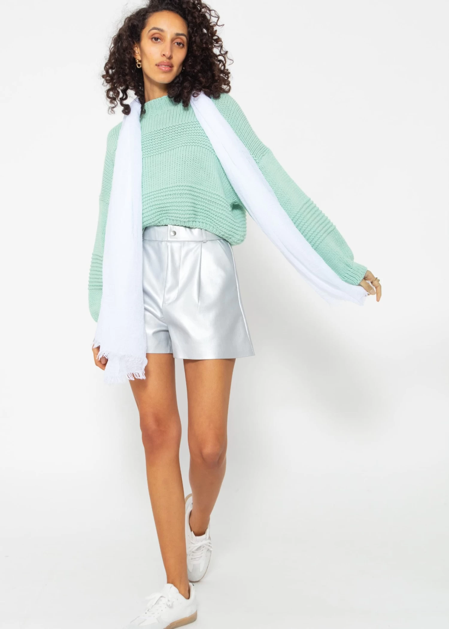 Aktualisiere deine Garderobe mit diesem angesagten Crop Strickpullover. Das Modell besitzt einen hohen Rundhals, eine Oversize Passform sowie überschnittene Schultern. Die locker geschnittenen Ärmel bieten eine entspannte Passform, während die gerippten Abschlüsse den perfekten Sitz garantieren. Der Pullover besticht durch sein einzigartiges, strukturiertes Design, das für einen auffälligen Look sorgt. Mit seiner verkürzten Länge ist dieser Pullover besonders geeignet, um ihn mit High-Waist Hosen oder Röcken zu kombinieren.