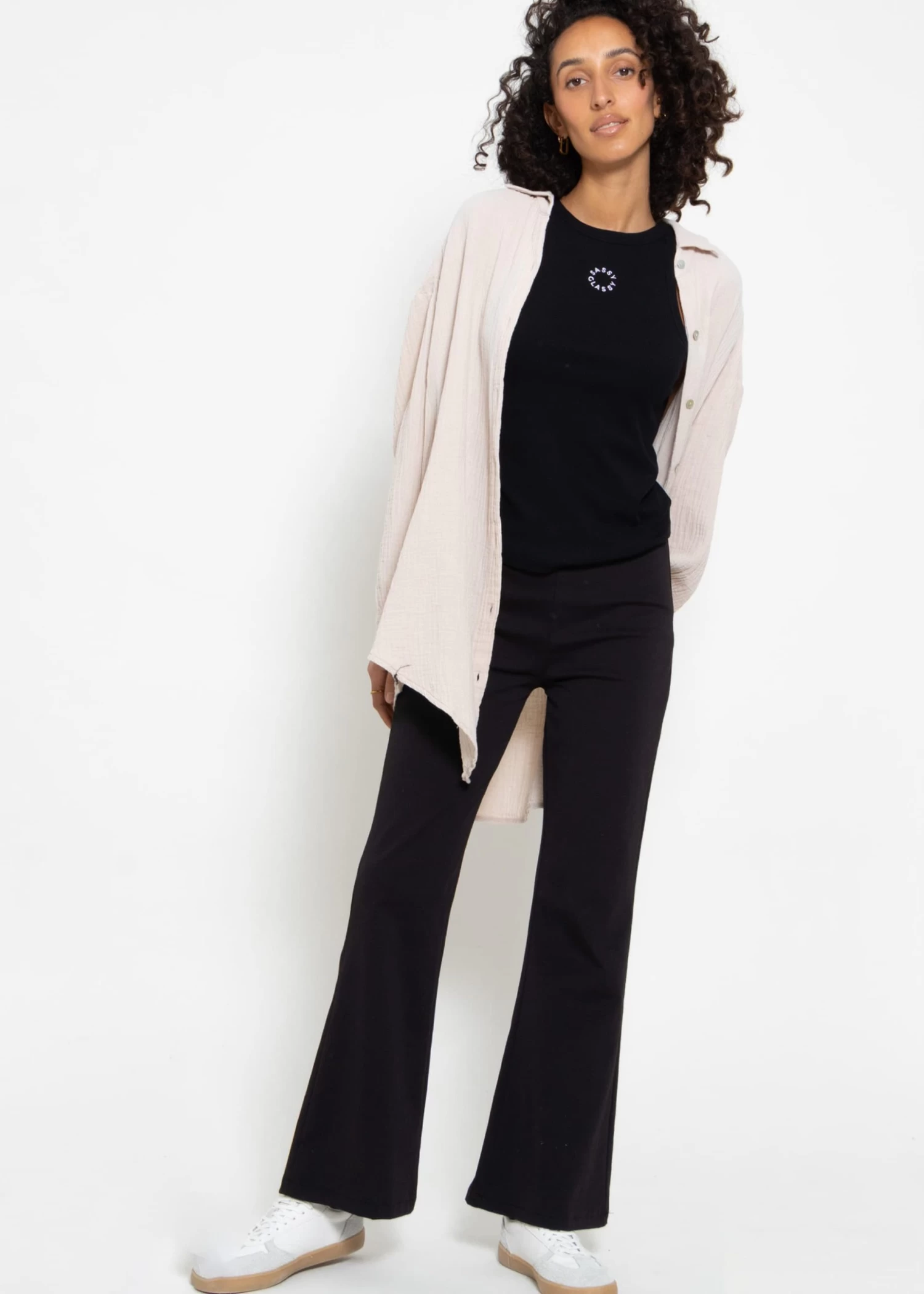 Dieses Modell verfügt über eine hohe Taillierung und einen elastischen Gummibund, der einen bequemen Sitz garantiert. Die Jersey Hose präsentiert einen ausgestellten Schnitt, der deine Beine optisch streckt. Das Design kann sowohl im Alltag als auch zu festlichen Anlässen getragen werden. Für einen gelassenen Look kannst du einen coolen Oversize Pullover und Sneakers dazu kombinieren. Mit einem figurbetonten Top und hohen Schuhen hast du einen eleganten Abendlook.