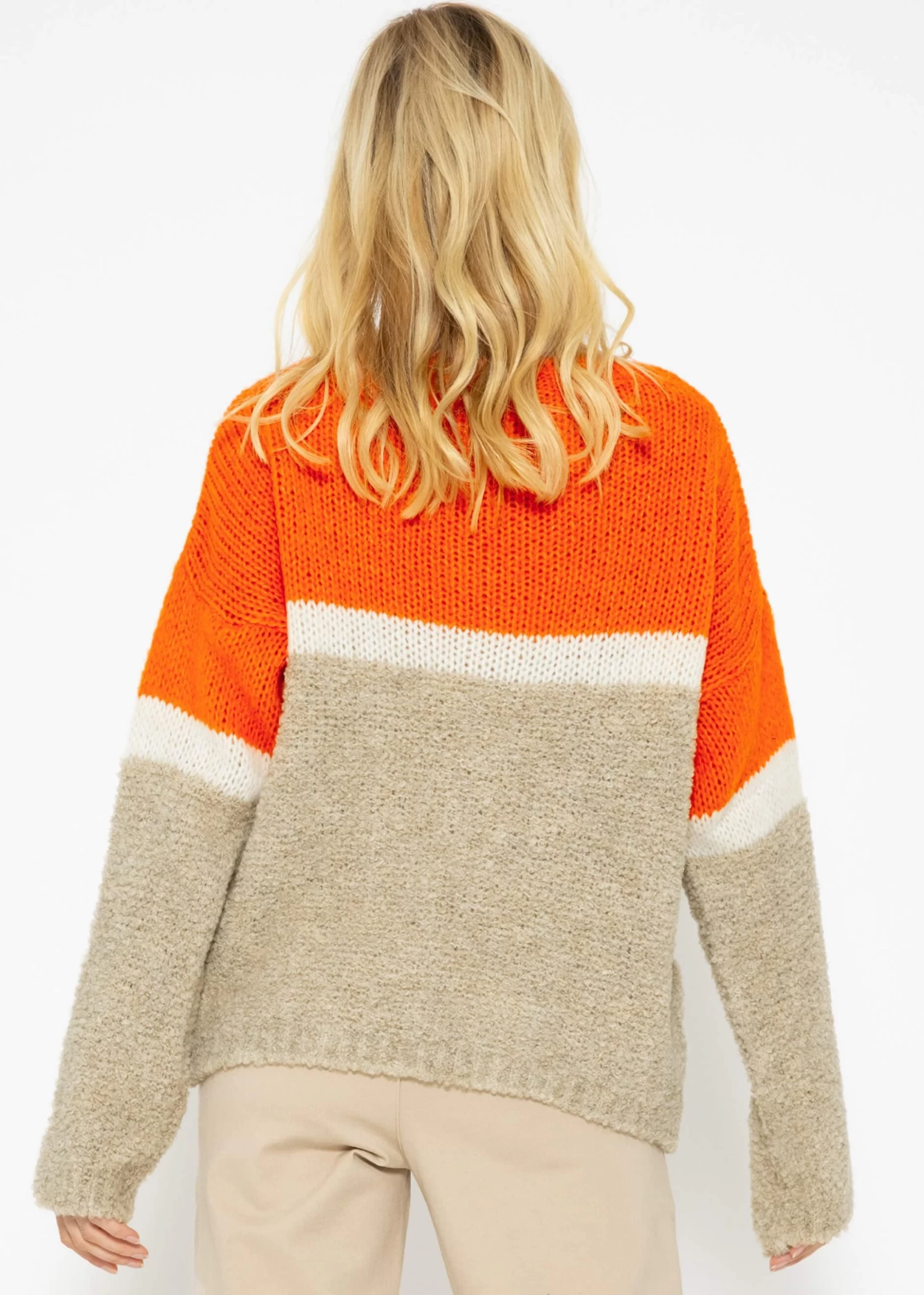 Flauschiger Pullover mit Streifendesign in orange-offwhite-beige
