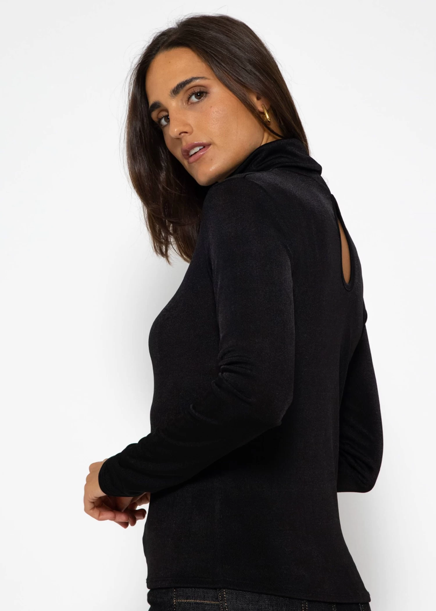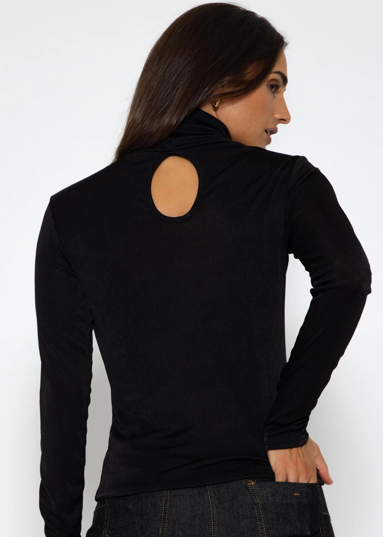 Fließendes Langarmshirt mit Rollkragen und Rückenausschnitt in schwarz