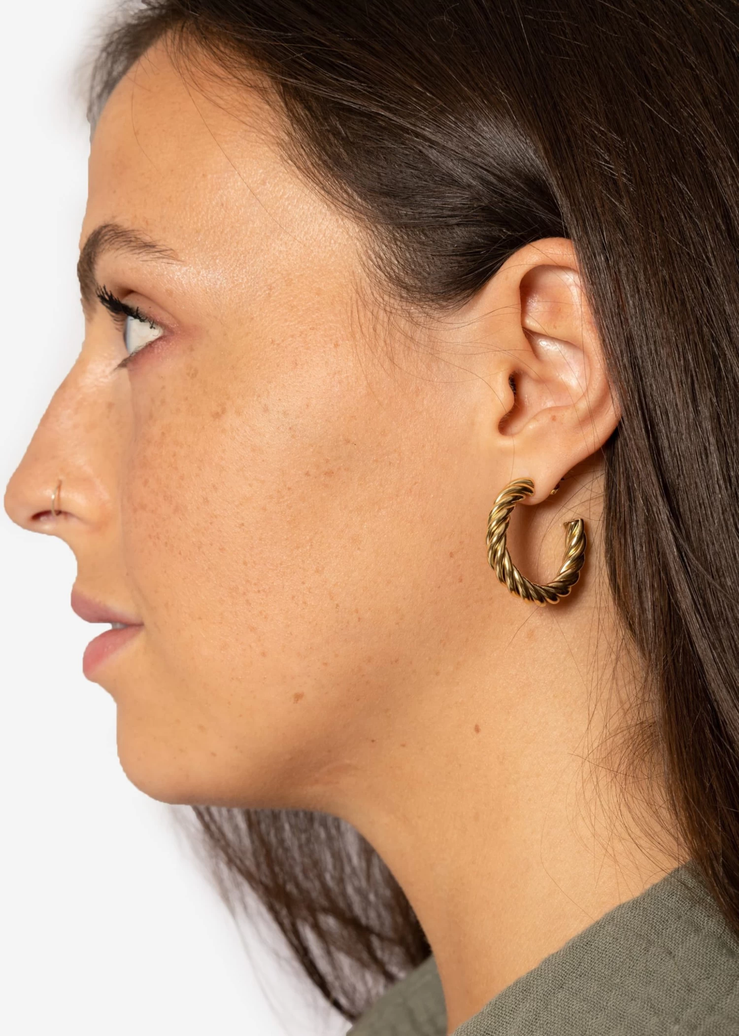 Diese klassischen Creolen sind ein Essential für den Alltag. Sie sind offen und haben einen Steckverschluss. Die Creolen haben wir auch in silber in unserem Onlineshop.