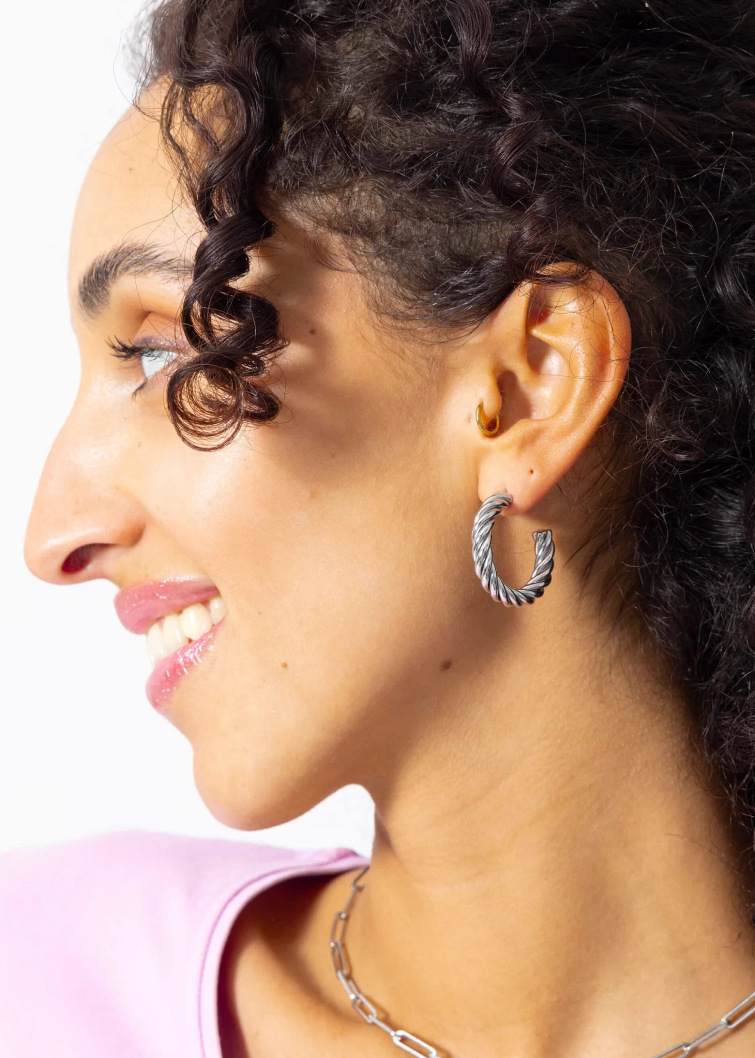 Diese klassischen Creolen sind ein Essential für den Alltag. Sie sind offen und haben einen Steckverschluss. Die Creolen haben wir auch in gold in unserem Onlineshop.