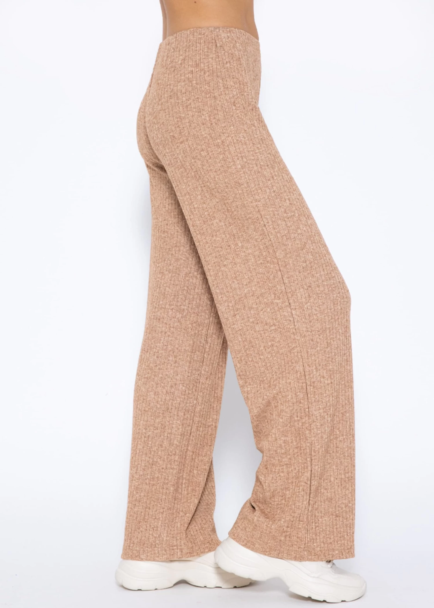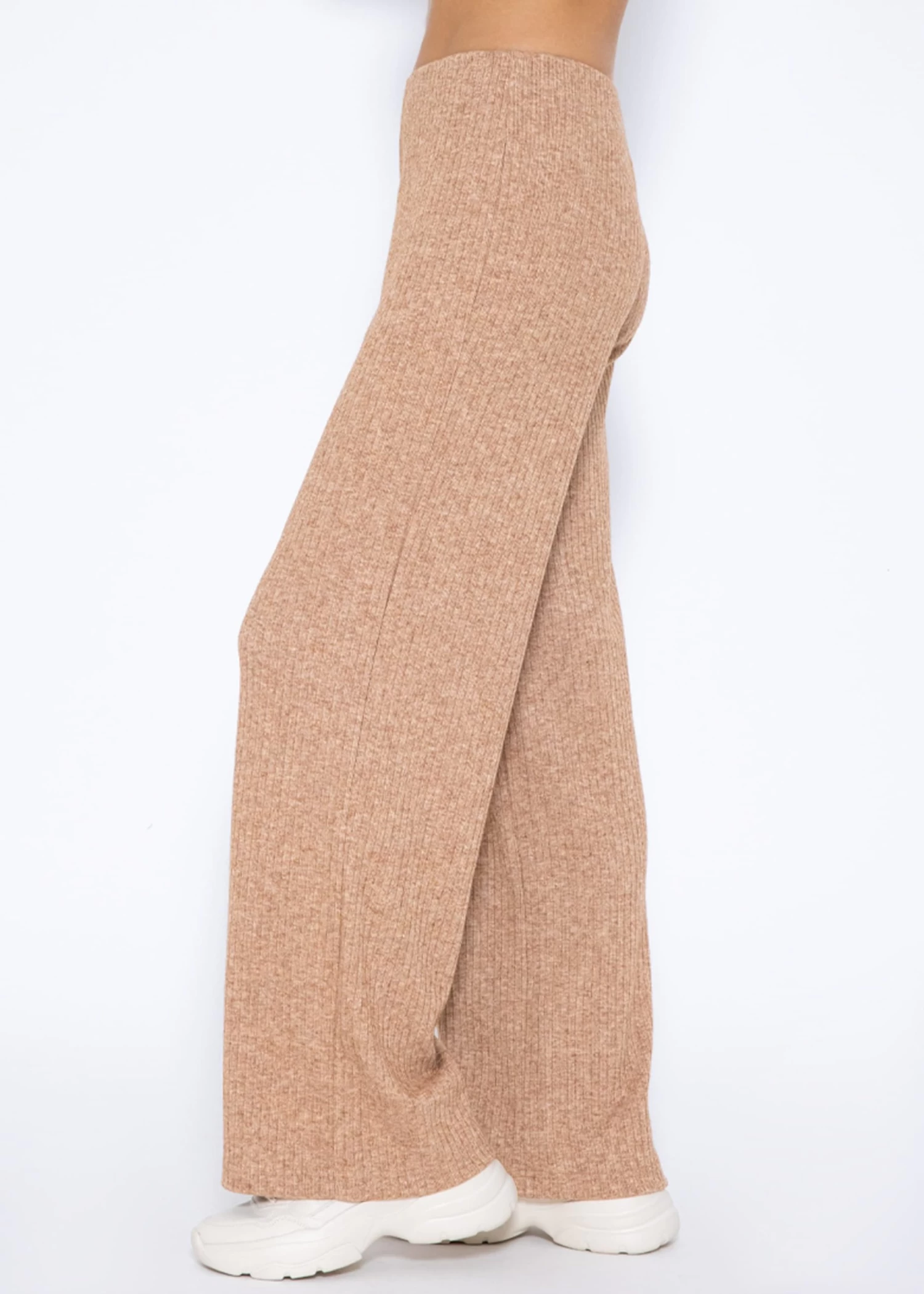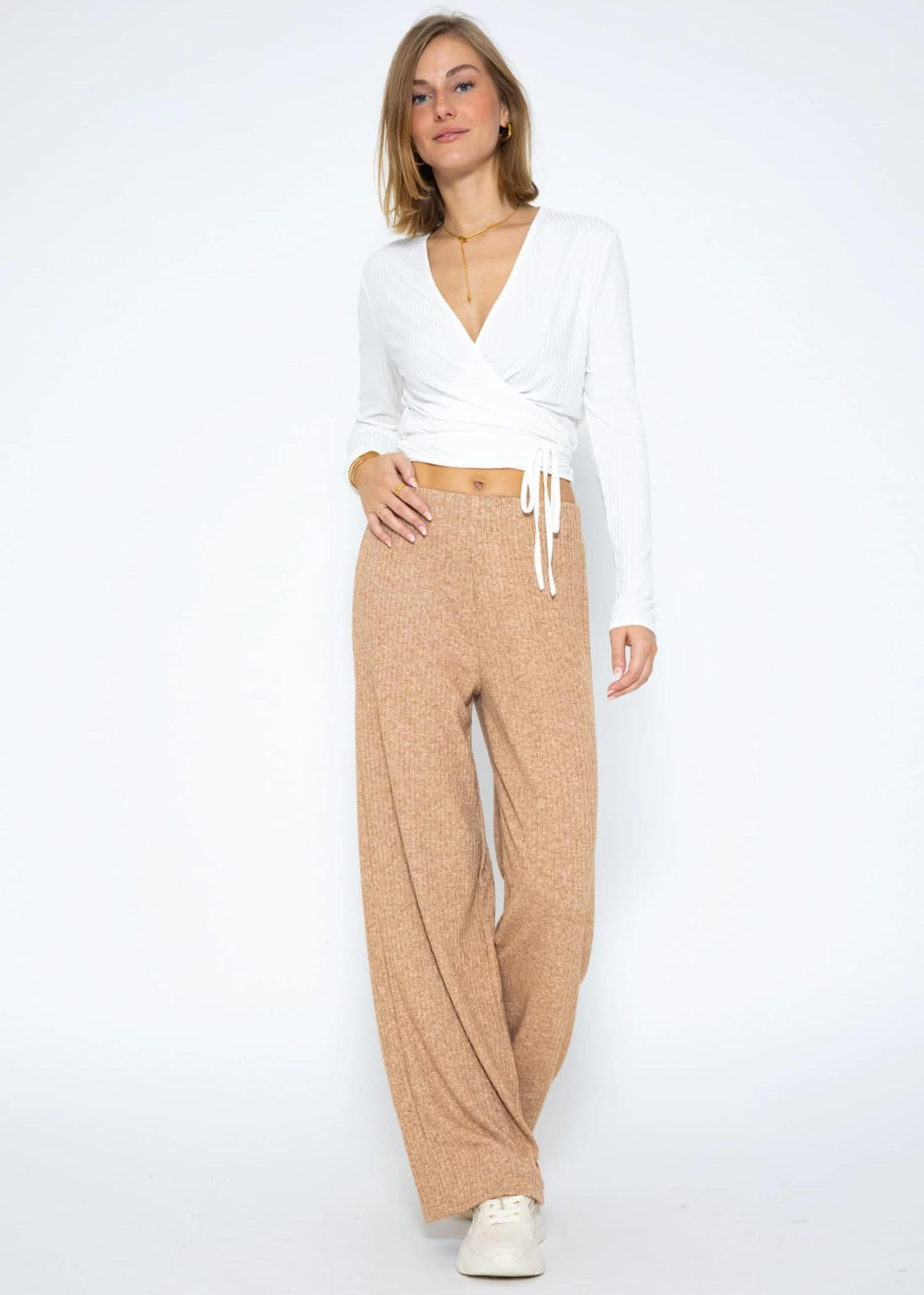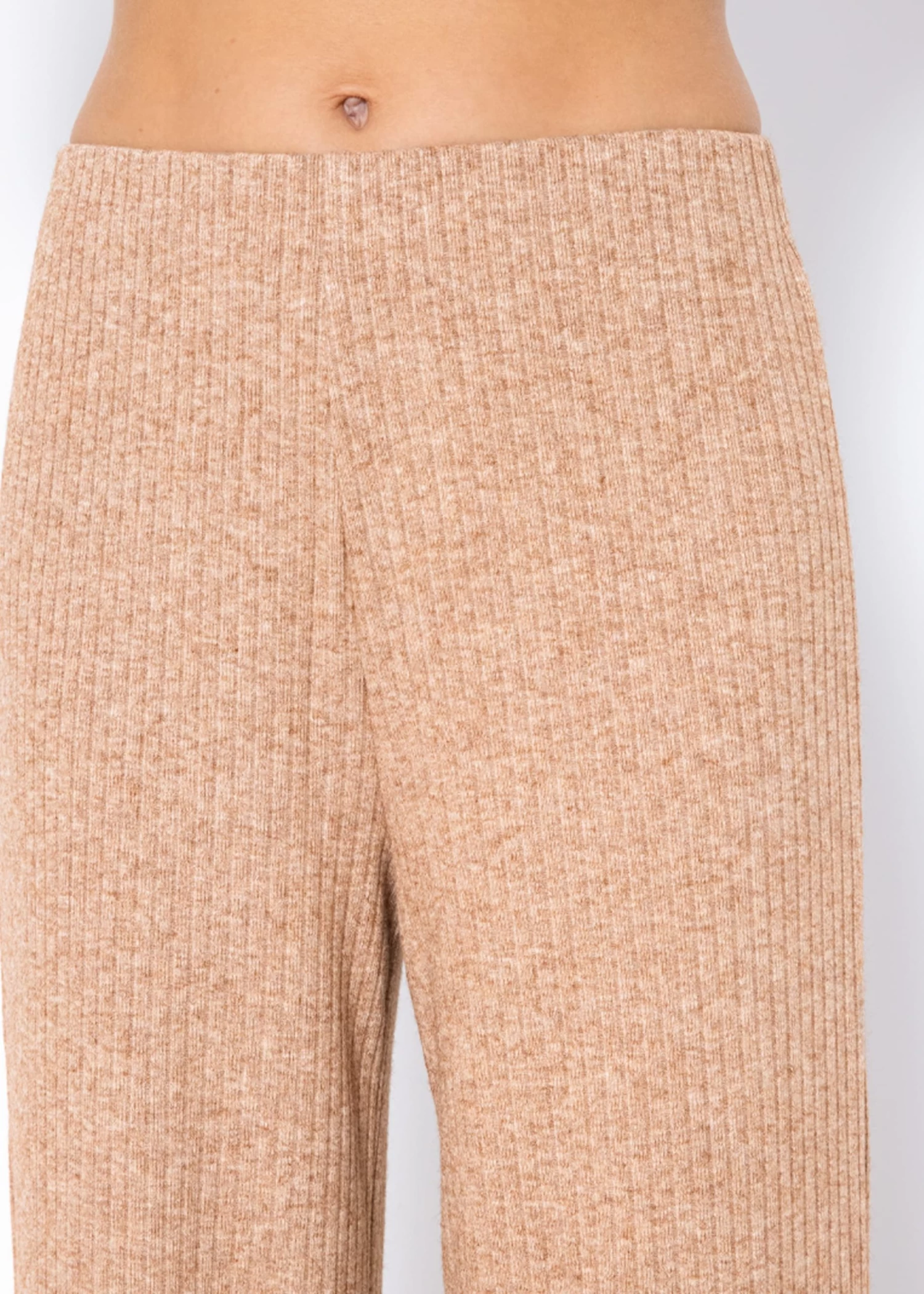 Geschmeidige, gerippte Hose in lässiger Silhouette. Das Modell besitzt einen hohen, elastischen Bund, der einen bequemen Sitz garantiert. Die entspannte Passform mit weitem Bein sorgt für ultimativen Tragekomfort, während das weiche Material mit Rippstruktur deiner Haut schmeichelt. Trage diese Hose für einen legeren Alltagslook mit einem simplen T-Shirt und mit cleanen Sneakers.