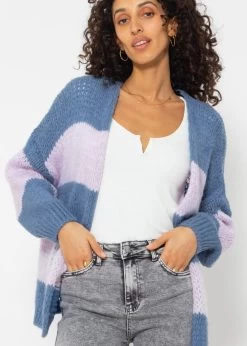 Gestreifter oversize Cardigan in Jeansblau und Flieder