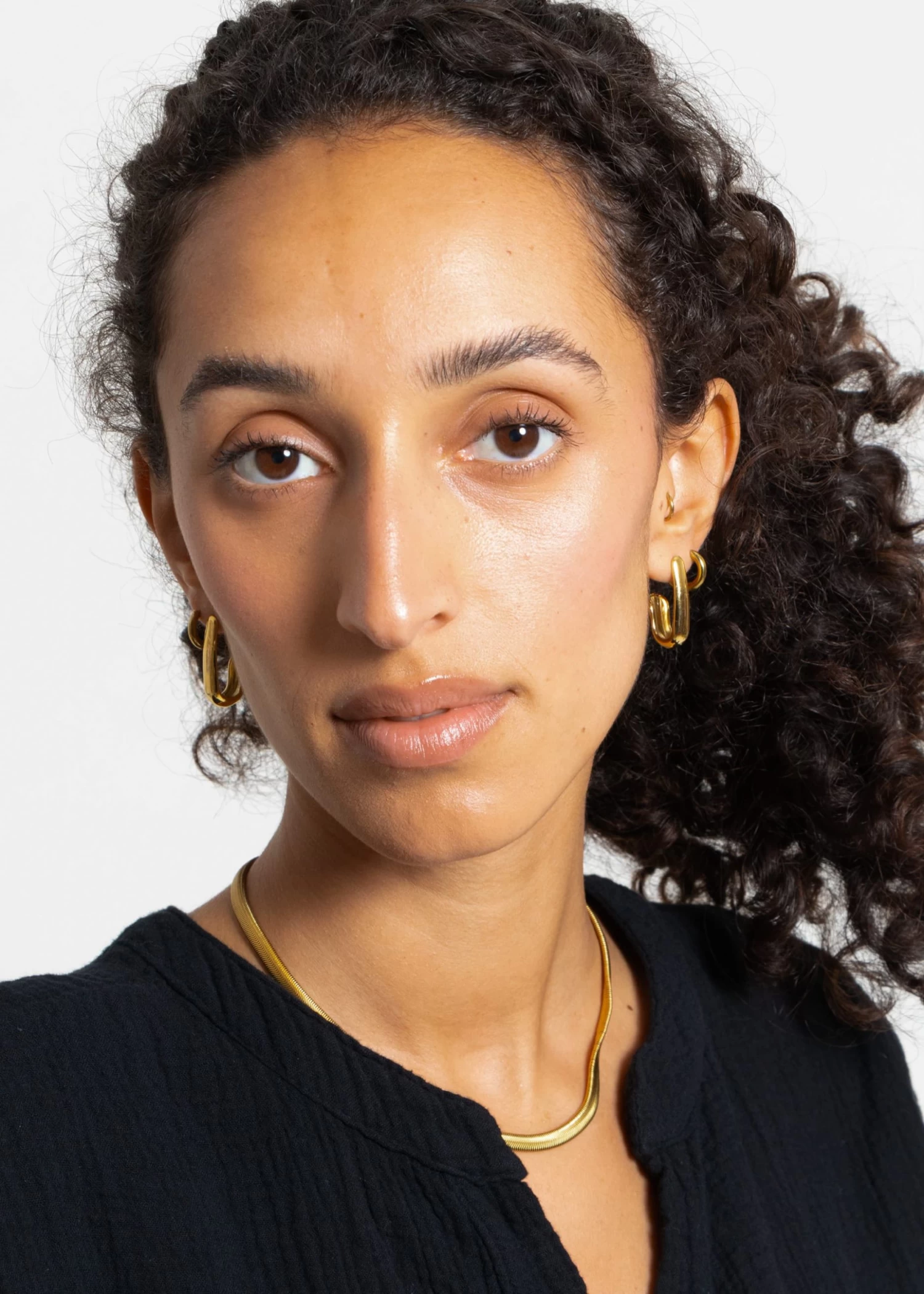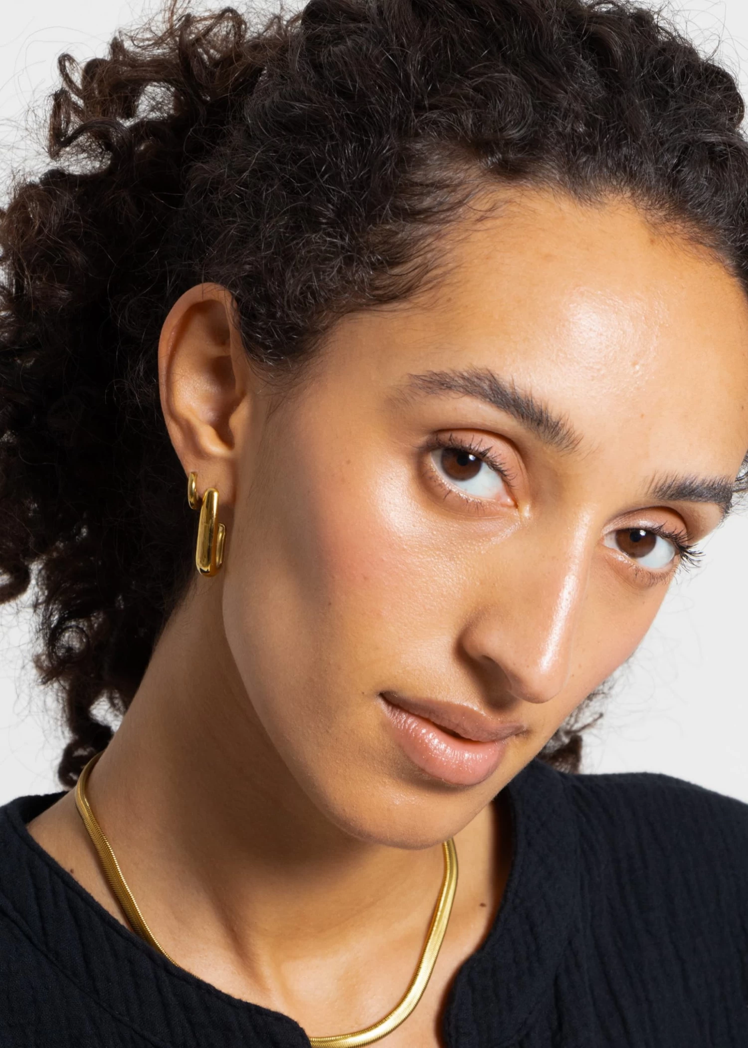 Diese Creolen sind eine Kombination aus klassischem Design mit einem modernen Twist. Das Modell überzeugt durch seine gewinkelte, abgerundete Tropfenform und die Cut-Out Optik. Sie besitzen einen Steckverschluss und beweisen sich als Alleskönner, ob im Alltag oder zu festlichen Anlässen, diese Ohrringe sind ein treuer Begleiter.