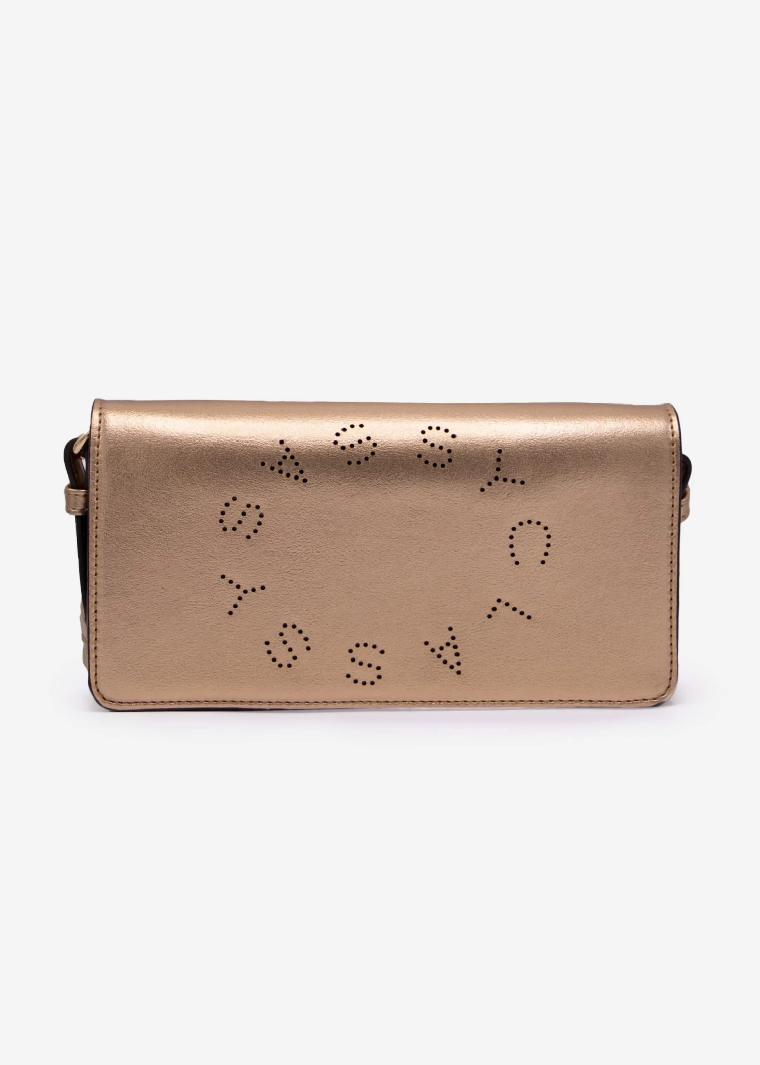 Glänzende Handtasche in Gold. Diese Tasche besteht aus hochwertigem, festem Kunstleder und bekommt durch die schimmernde Optik einen eleganten Touch. Auf der Vorderseite ist die Tasche mit dem SASSYCLASSY Logo verziert. Sie besitzt goldfarbene Metall Details sowie einen Schulterriemen, der glitzernde Elemente enthält und längenverstellbar ist. Im Inneren der Tasche befinden sich ein Hauptfach, ein seitliches Zipperfach sowie mehrere Kartenfächer. Mit einem Magnetknopf-Verschluss ist die Tasche ganz einfach zu schließen. Sie verfügt über ausreichend Kapazität für Artikel des täglichen Gebrauchs wie Schlüssel, Geldbeutel, Handy oder kleine Kosmetikartikel.