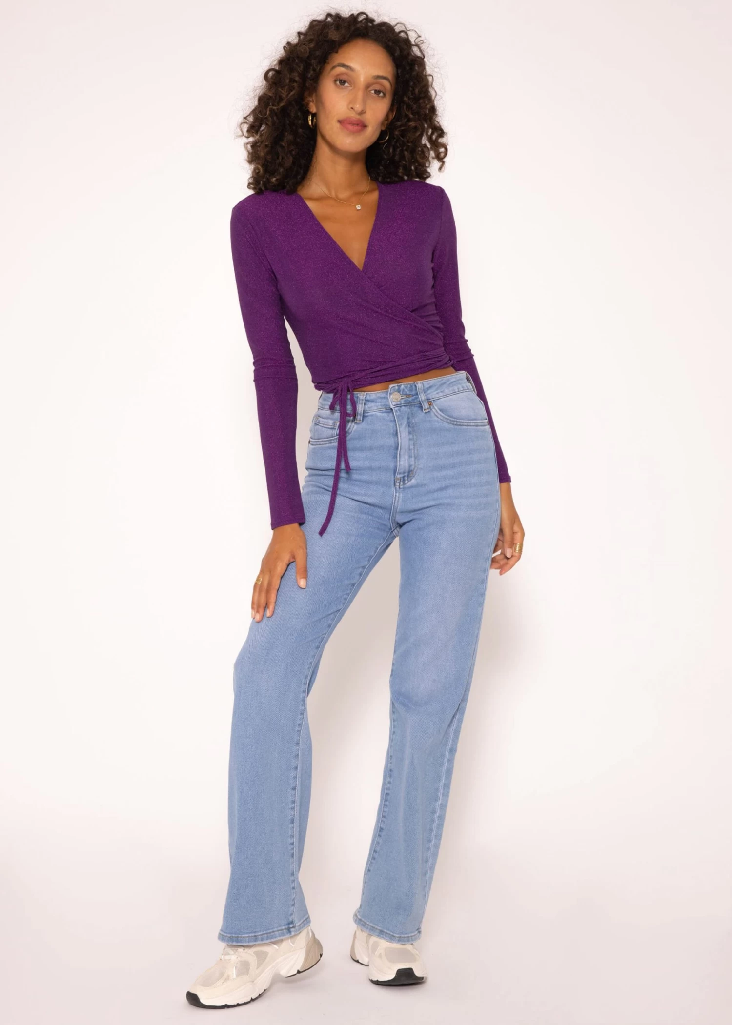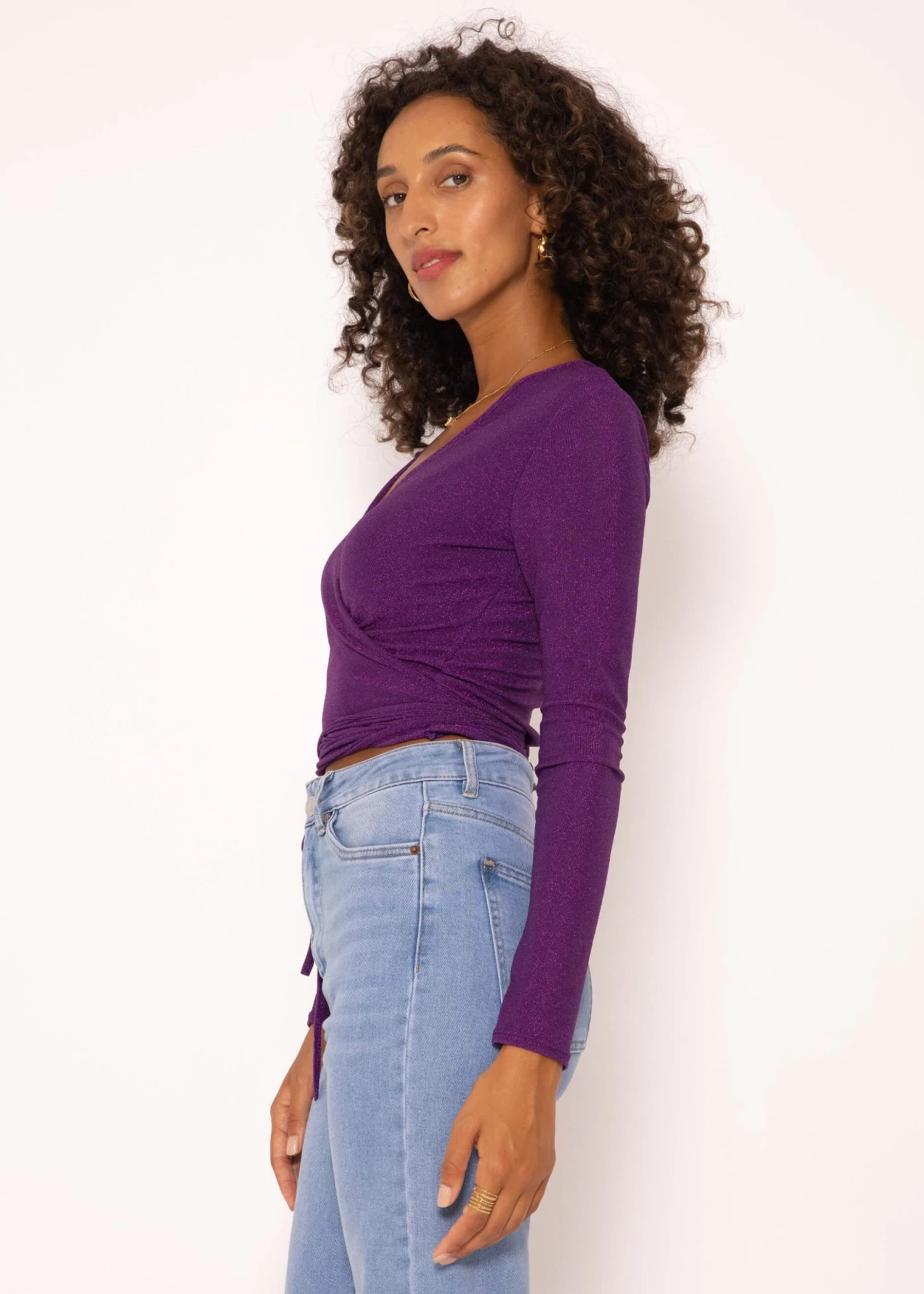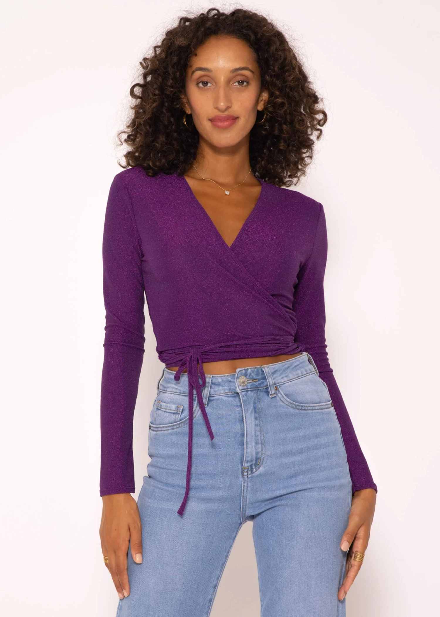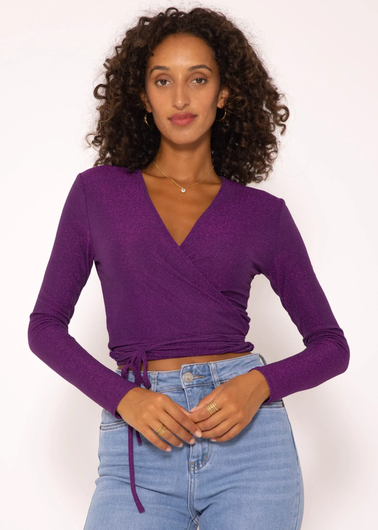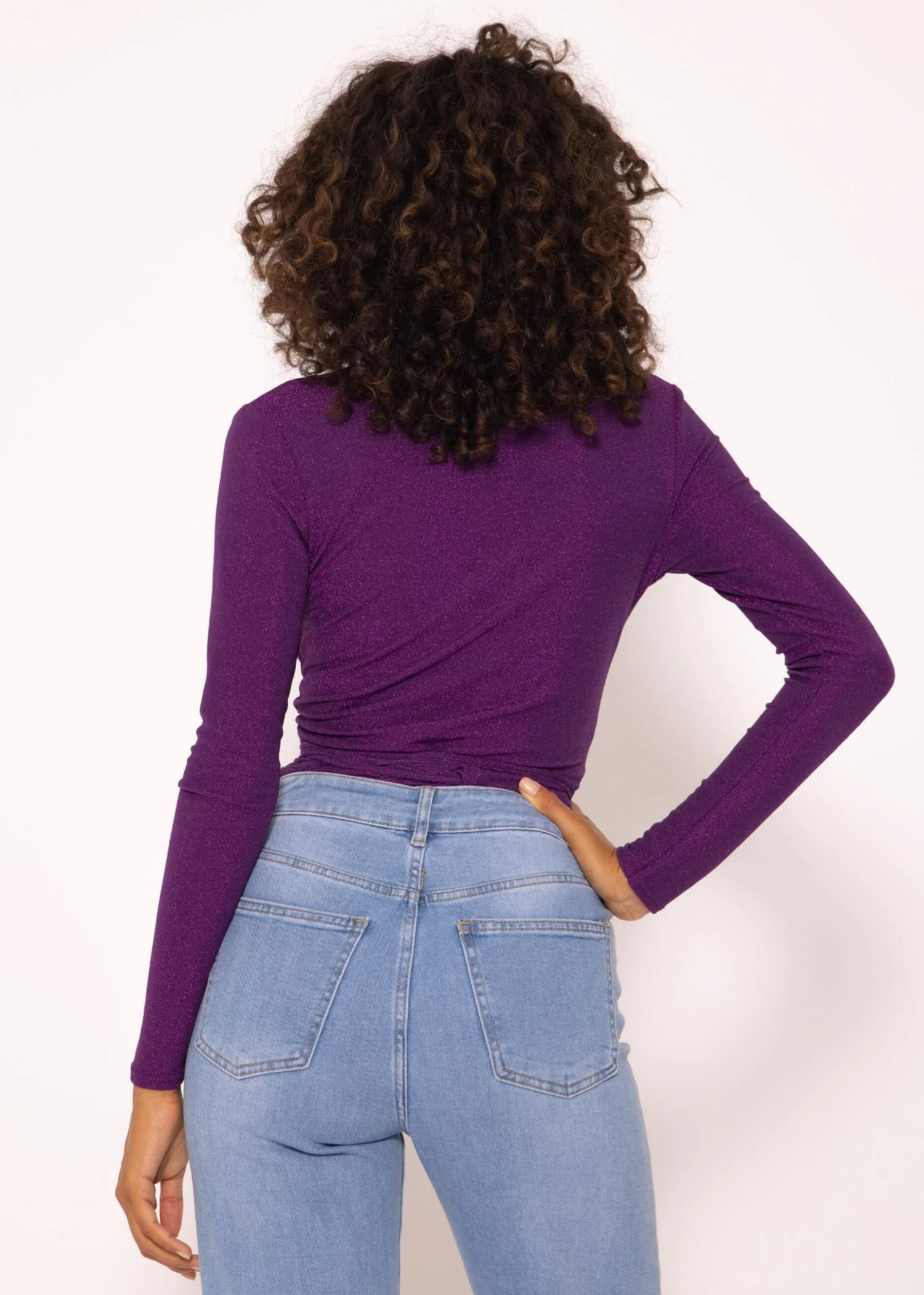Glitzerndes Langarmshirt zum Wickeln in lila