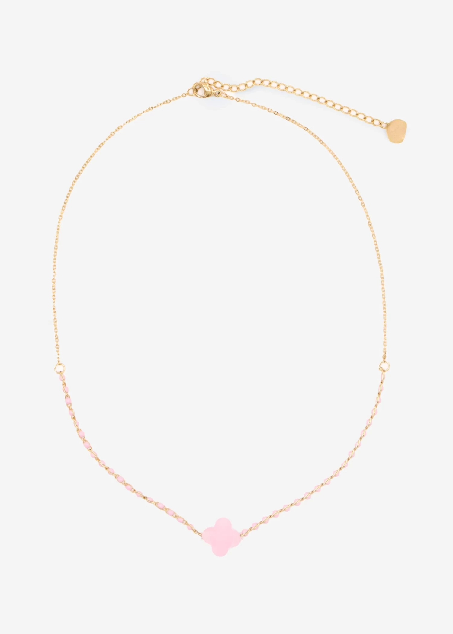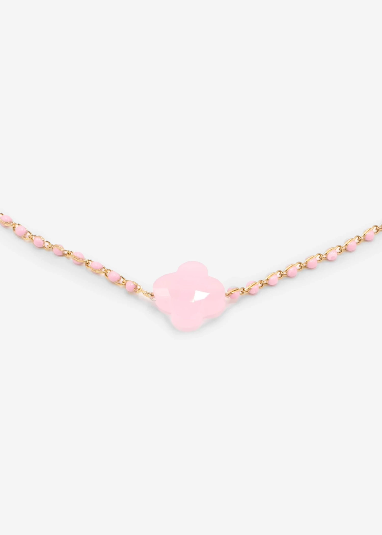 Halskette mit Kleeblatt in Rosa