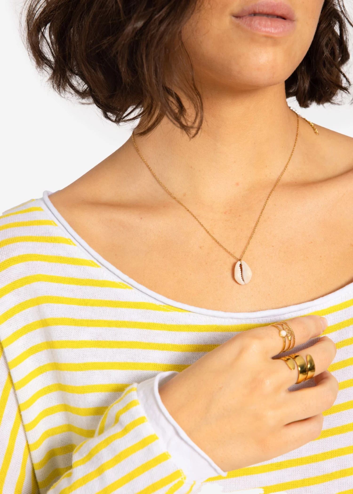 Halskette mit Muschelanhänger in gold
