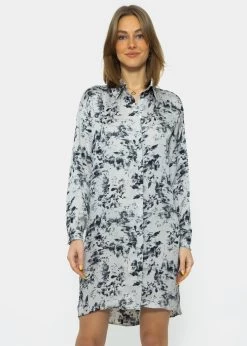 Dieses Hemdblusenkleid mit Print präsentiert sich in einer raffinierten Farbkombination, die dem Modell einen modernen und dennoch klassischen Charakter verleiht. Mit seiner verdeckten Knopfleiste, dem stilvollen Kragen und den langen Ärmeln mit schmalen Manschetten präsentiert sich dieses Design als eine perfekte Synthese aus Stil und Funktionalität. Das Kleid besitzt eine verlängerte Rückenpartie sowie eine angesagte Oversized-Passform. Trage dieses Hemdblusenkleid und zeige deine Affinität für zeitlose Mode mit einem Hauch von modernem Flair.