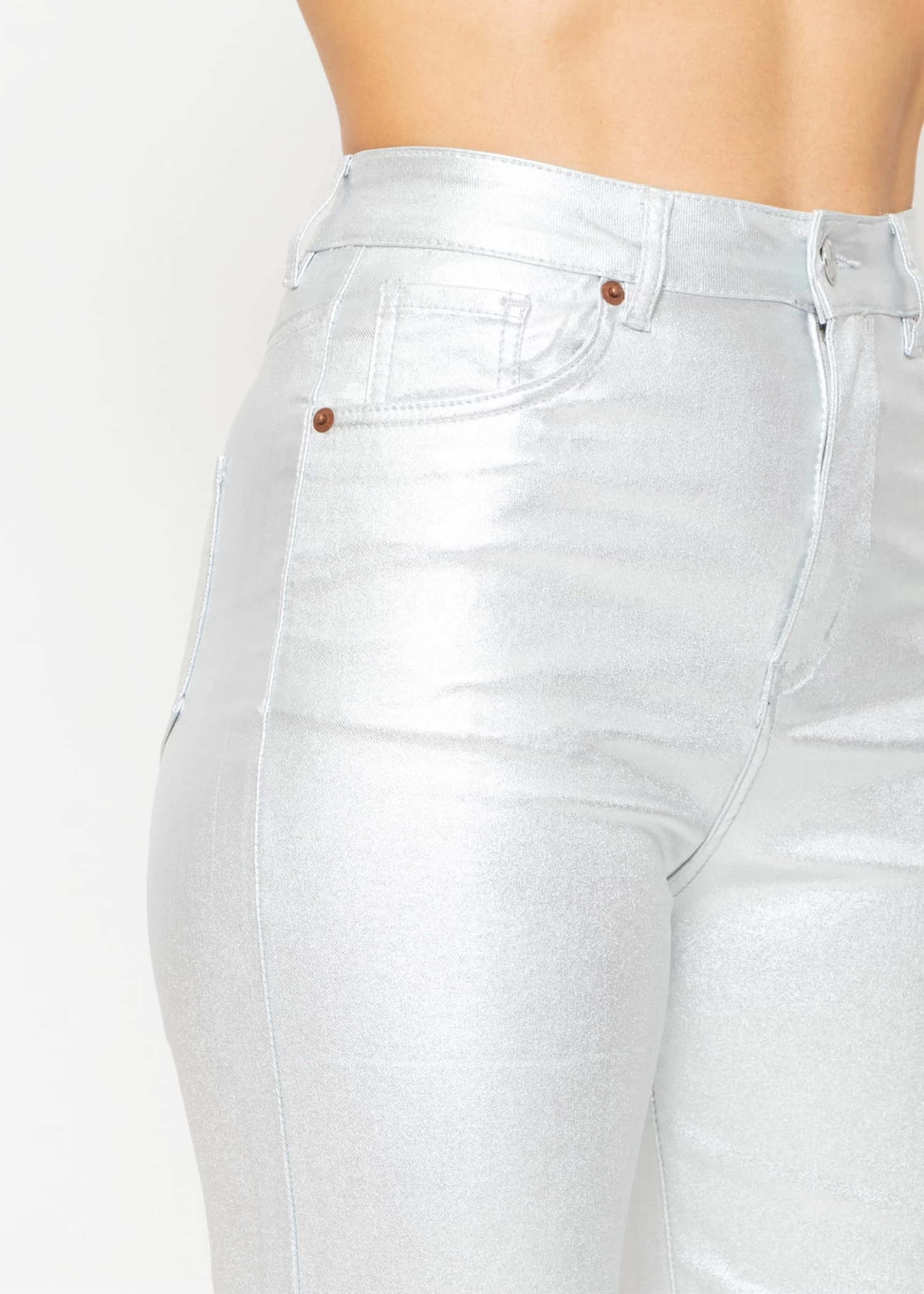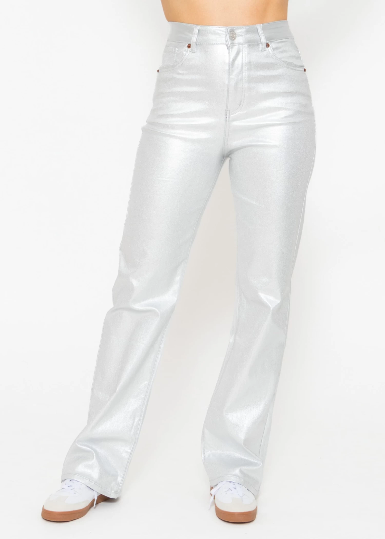 Highwaist Jeans mit geradem Bein in Metallic Silber