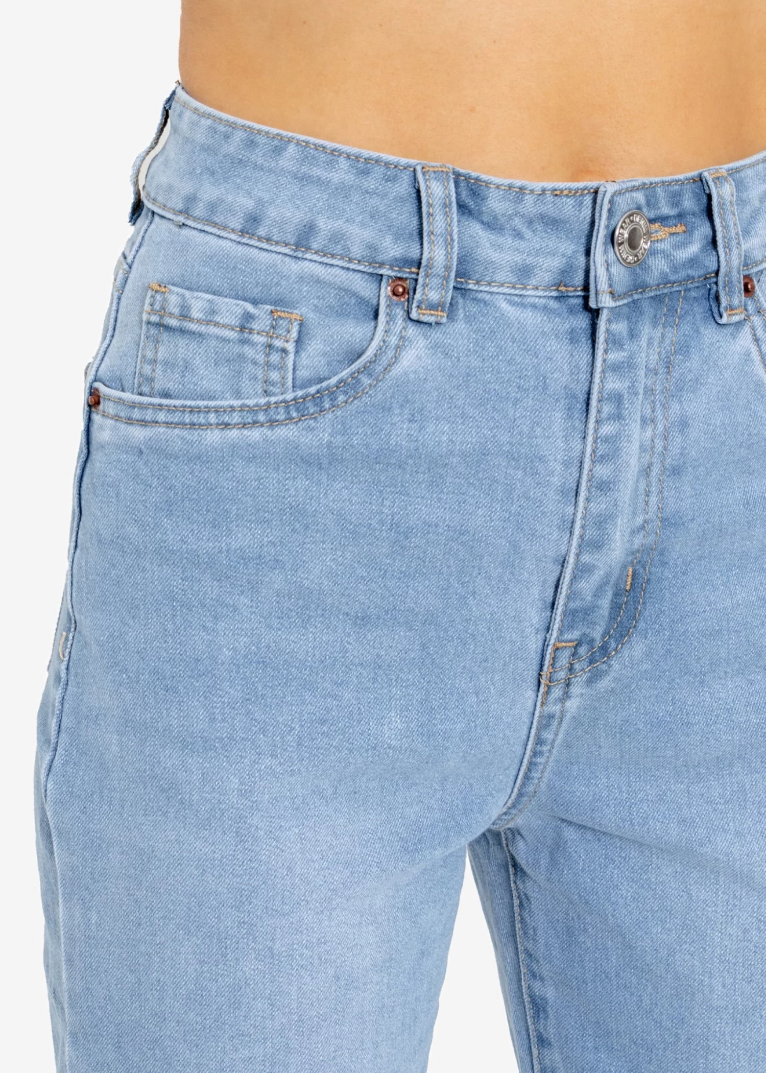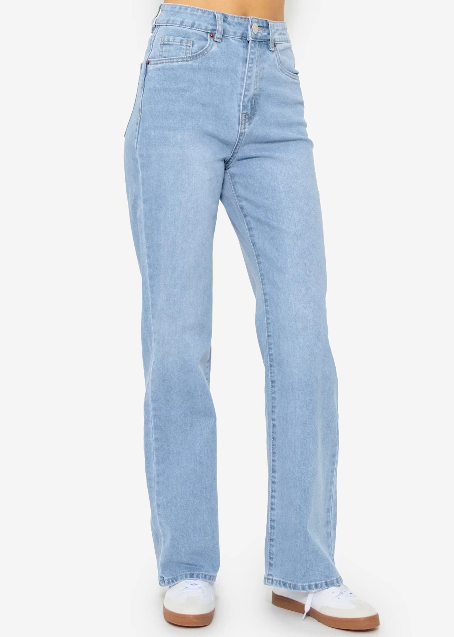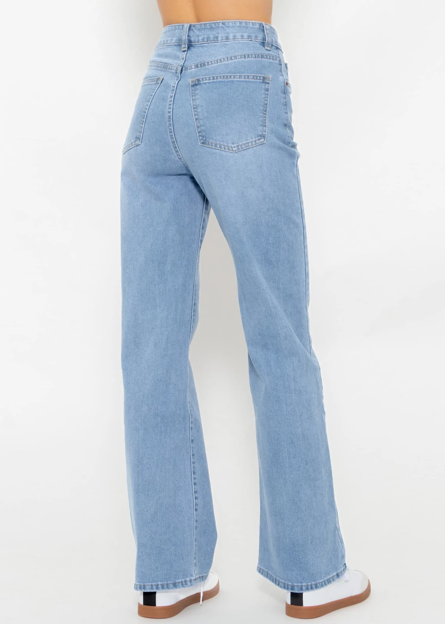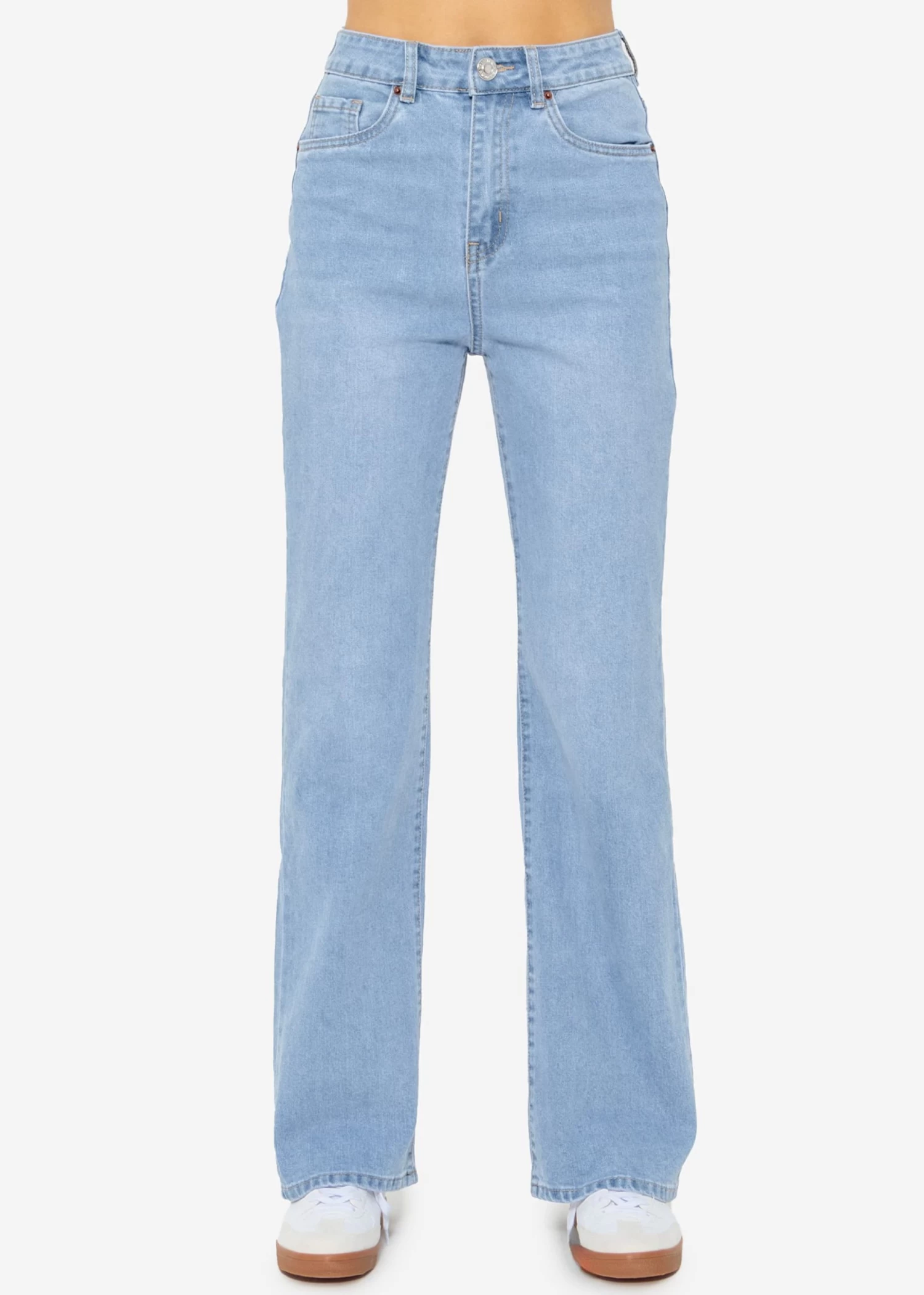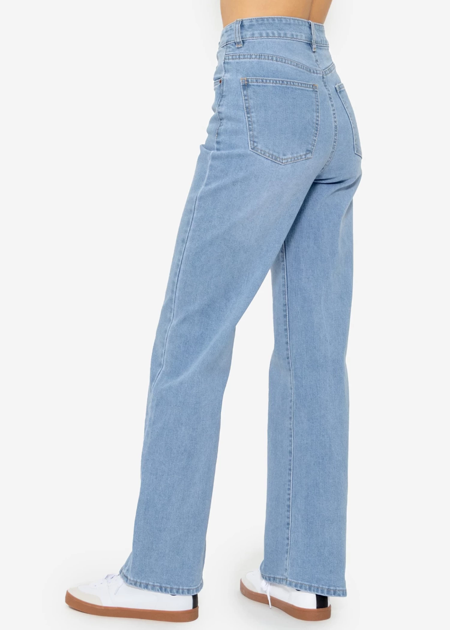 Diese stilvolle Jeans vereint Komfort mit modernem Design. Ausgestattet mit einem praktischen Knopf- und Reißverschluss, sowie Gürtelschlaufen, präsentiert sie sich im klassischen 5-Pocket-Stil. Der High-Waist Schnitt sorgt für eine schmeichelhafte Taille, während das weite Bein und die lockere Passform Bewegungsfreiheit garantieren. Gefertigt aus einem hochwertigen, elastischen Baumwollgemisch, bietet diese Jeans ein weiches Tragegefühl und eine optimale Passform, die sich den ganzen Tag über angenehm anfühlt. Ihre lässige Eleganz macht sie zum idealen Begleiter für schöne Oversize Pullover oder Tops, wodurch vielseitige Looks für jede Gelegenheit kreiert werden können.