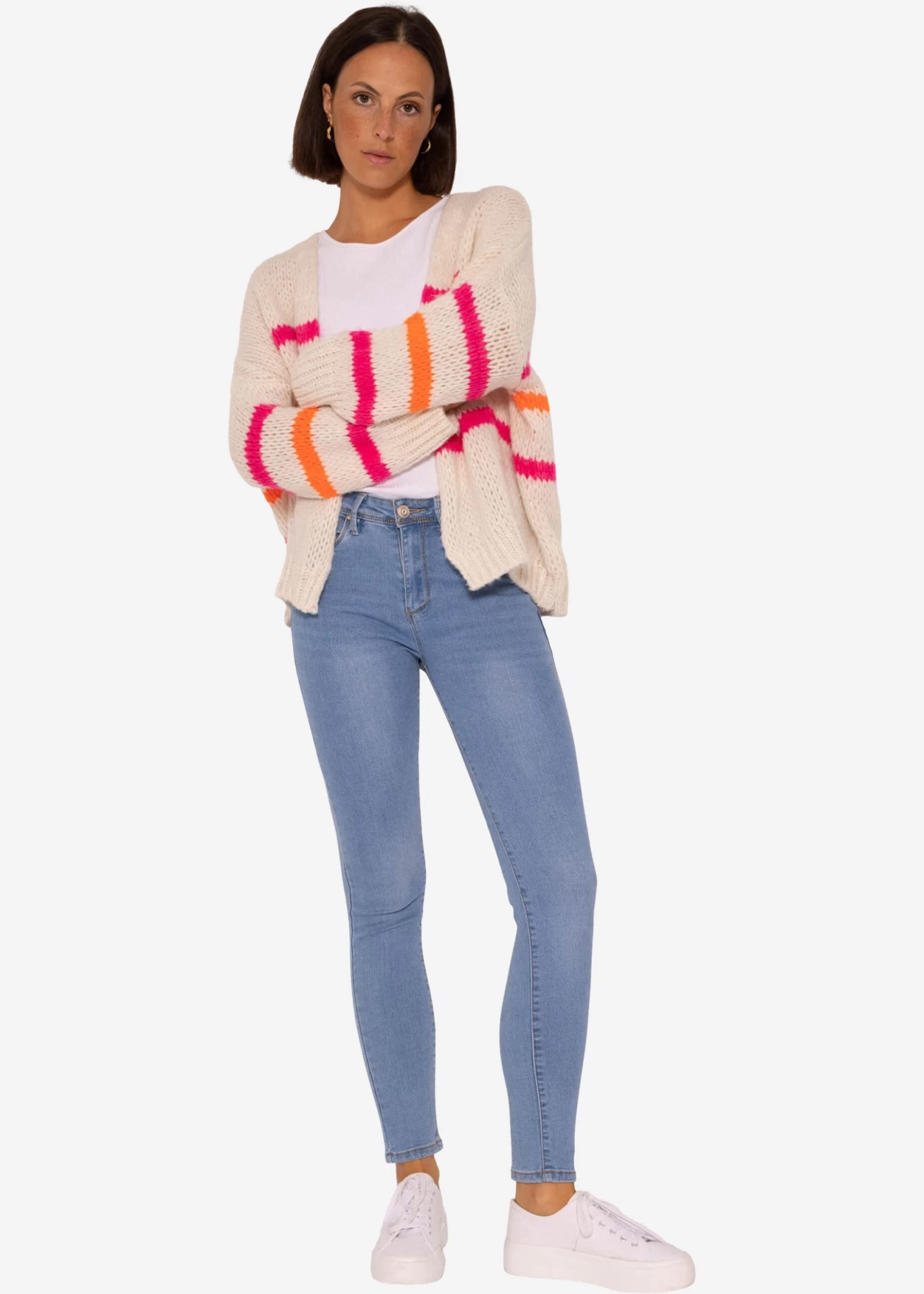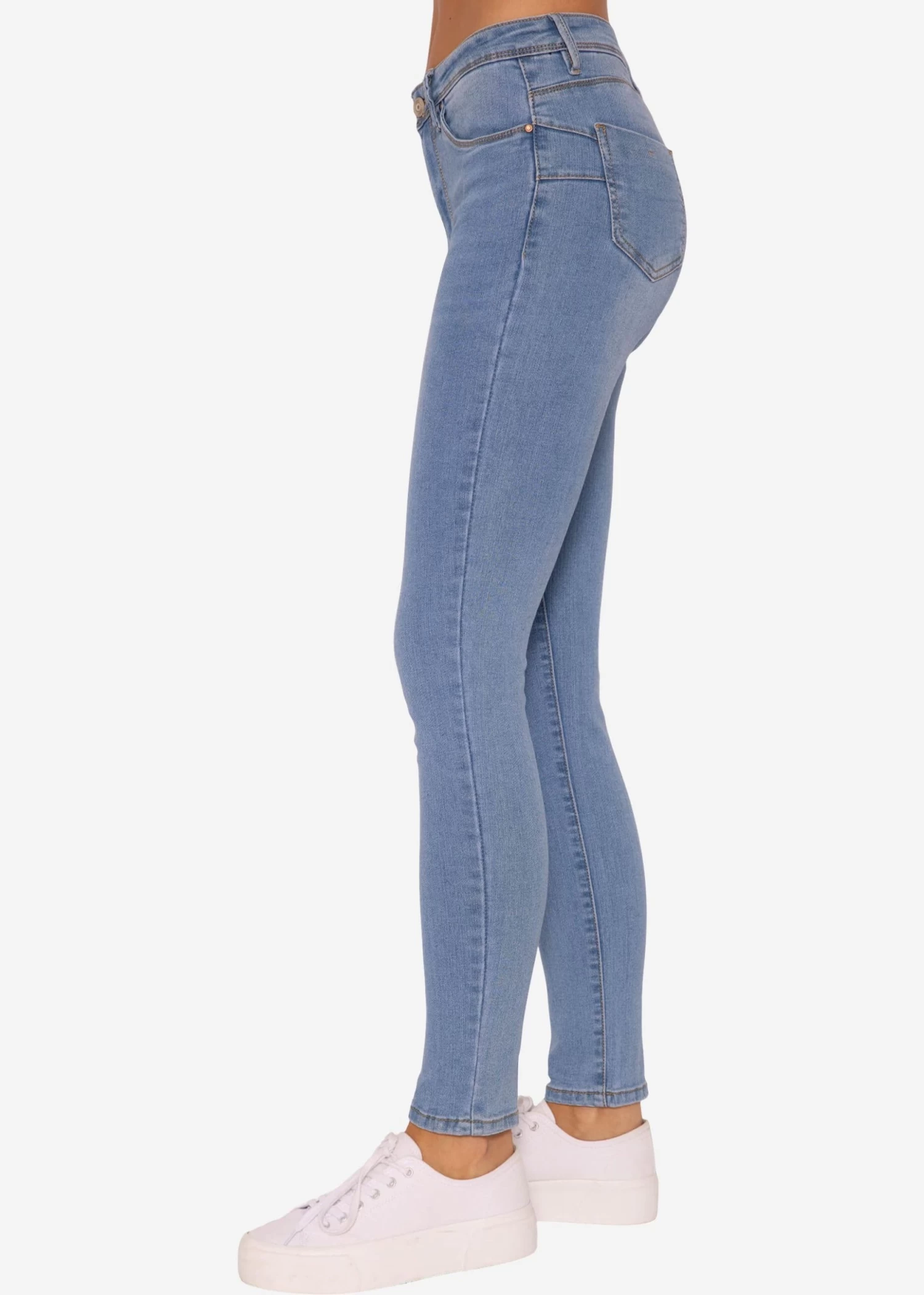 Highwaist Push Up Jeans in Hellblau. Das Modell besitzt einen Knopf- und Reißverschluss, enganliegende Passform und ist im 5-Pocket-Design gehalten. Der Skinny-Fit bringt deine Beine gekonnt zur Geltung und streckt sie optisch. Durch die diagonale Nahtführung entsteht ein Push-Up-Effekt. Die Hose verfügt über einen High-Waist-Schnitt, der dir eine umwerfende Silhouette zaubert. Sie ist aus einem elastischen, weichen Baumwollgemisch gefertigt und schaut dadurch nicht nur super aus, sondern ist auch bequem und sitzt optimal. Für einen angesagten Look und idealen Kontrast, empfehlen wir die Jeans mit Oversized-Teilen zu kombinieren. So kannst du ein weites, cooles T-Shirt und einen locker geschnittenen Blazer oder auch einfach unsere Musselinbluse mit einem Top dazu stylen.