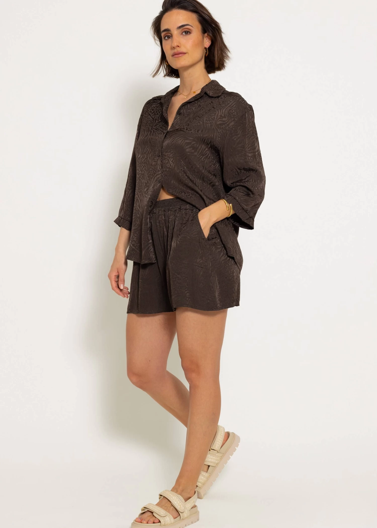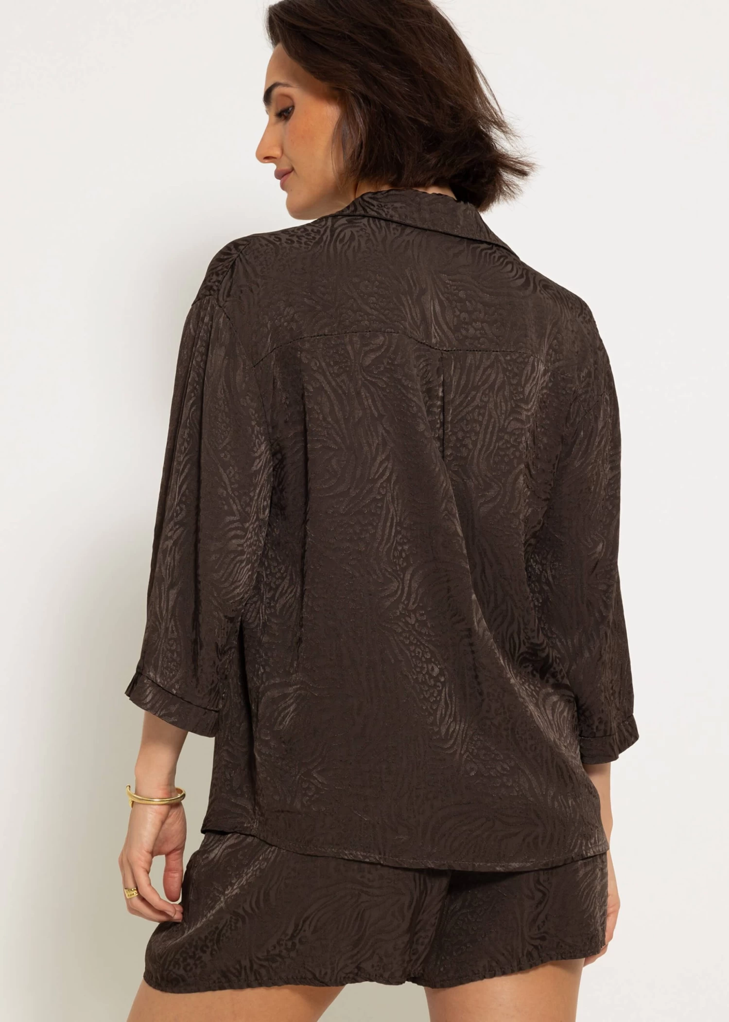 Jacquard Blusenhemd in Espresso