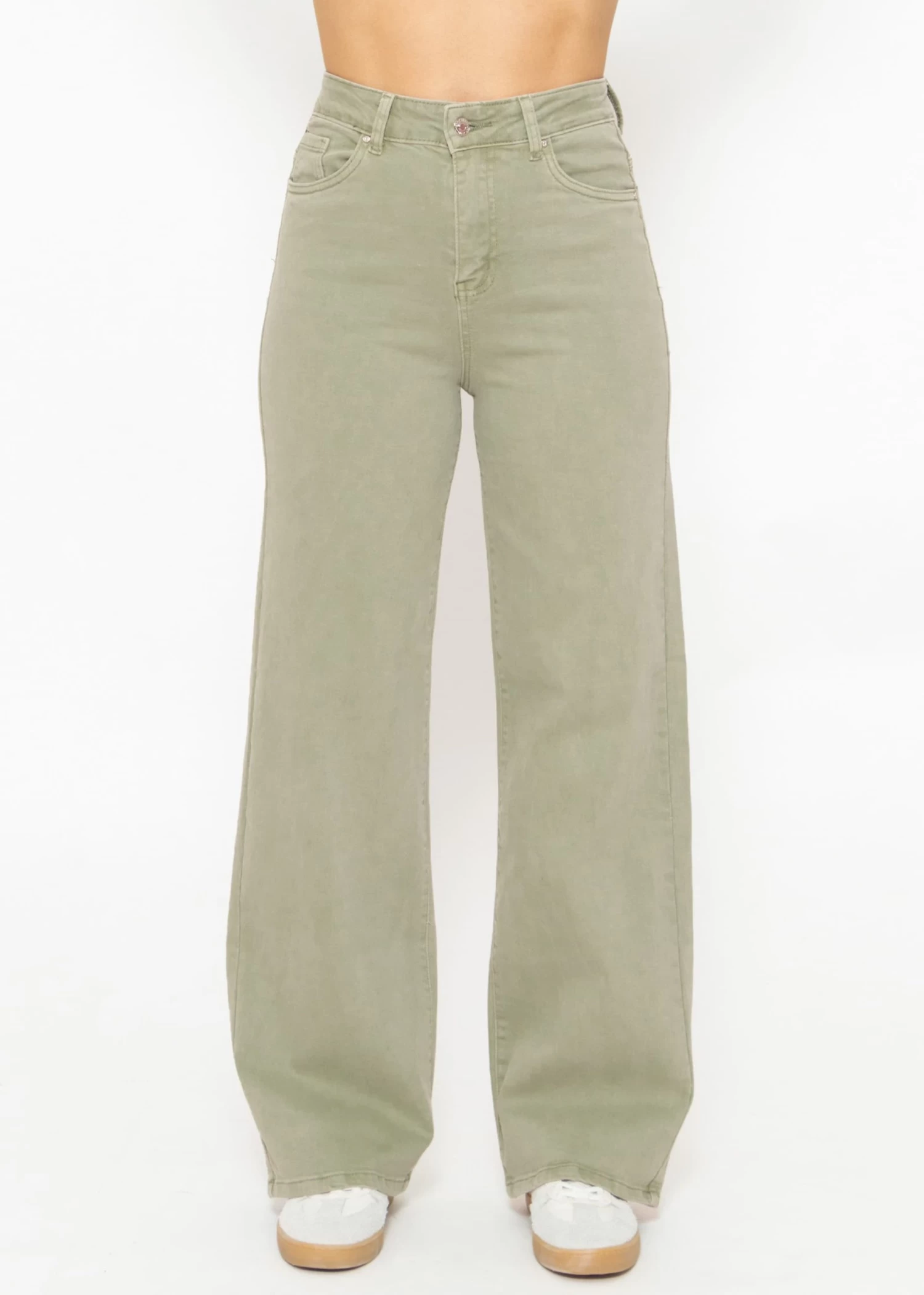 Diese stilvolle Jeans vereint Komfort mit modernem Design. Ausgestattet mit einem praktischen Knopf- und Reißverschluss, sowie Gürtelschlaufen, präsentiert sie sich im klassischen 5-Pocket-Stil. Der High-Waist Schnitt sorgt für eine schmeichelhafte Taille, während das weite Bein und die lockere Passform Bewegungsfreiheit garantieren. Gefertigt aus einem hochwertigen, elastischen Baumwollgemisch, bietet diese Jeans ein weiches Tragegefühl und eine optimale Passform, die sich den ganzen Tag über angenehm anfühlt. Ihre lässige Eleganz macht sie zum idealen Begleiter für schöne Oversize Pullover oder Tops, wodurch vielseitige Looks für jede Gelegenheit kreiert werden können.