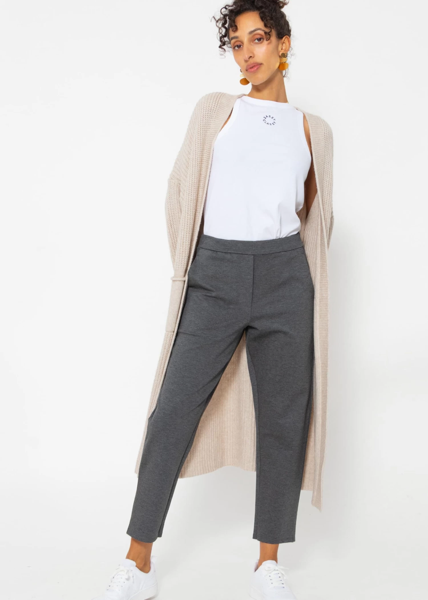 Diese Schlupfhose überzeugt durch ihren superlässigen Fit. Das Modell verfügt über sportive Einschubtaschen, einen elastischen Gummibund und eine verkürzte Länge. Hergestellt aus Viskose-Jersey garantiert die Hose höchsten Komfort und bietet dir den ganzen Tag über ein angenehmes Tragegefühl. Der zeitlose, elegante Look der Chinohose wird durch das Jersey auf eine einzigartige Weise aufgelockert, sodass du sie sowohl für formelle Anlässe, im Büro oder in deiner Freizeit, mühelos in verschiedene Outfits generieren kannst.