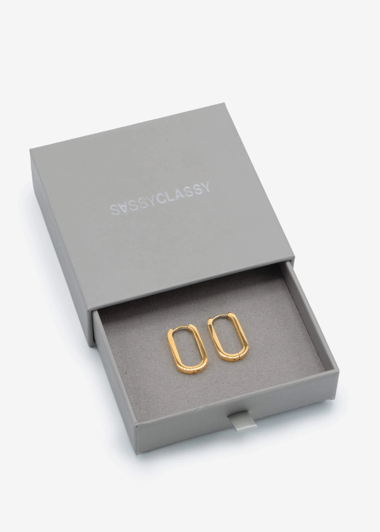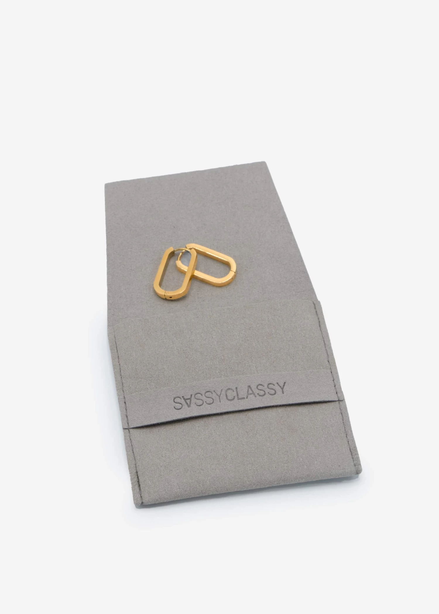 Diese markanten Squared Hoops vereinen klare, moderne Linien mit einer sanften, geschwungenen Kontur. Das Modell präsentiert sich in einer goldfarbenen Ausführung, die Stil verkörpert. Die quadratische Silhouette verleiht den Ohrringen einen trendigen Touch, der sie von gewöhnlichen Creolen abhebt. Sie besitzen einen praktischen Clipverschluss, der dafür sorgt, dass die Hoops sicher an Ort und Stelle bleiben.