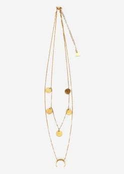 Kombinierte Halskette mit Mond und Plättchen in gold