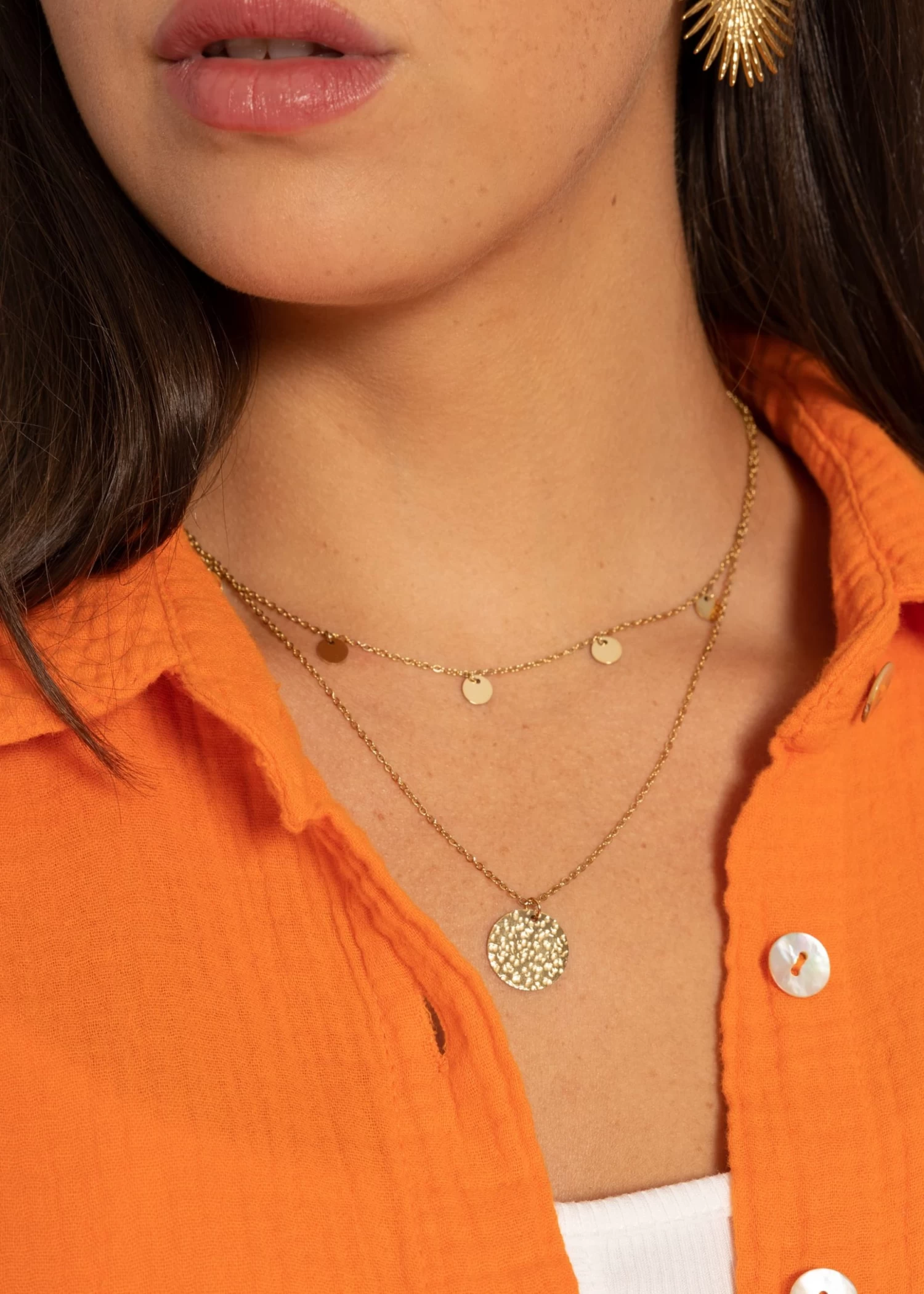 Kombinierte Kette mit Anhänger und zarten Plättchen in gold