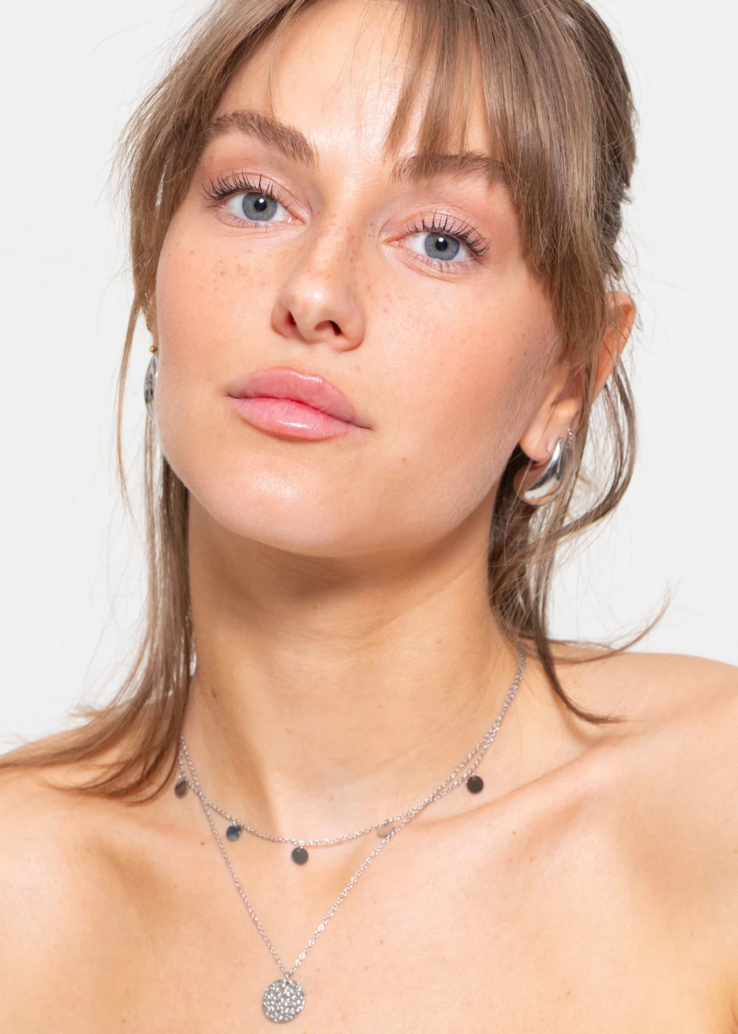 Kombinierte Kette mit Anhänger und zarten Plättchen in Silber