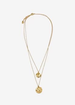 Kombinierte Halskette bestehend aus 2 zarten Gliederketten in verschiedenen Längen. Zwei runde Anhänger runden das Design der Kette ab. Die Kette ist längenverstellbar.