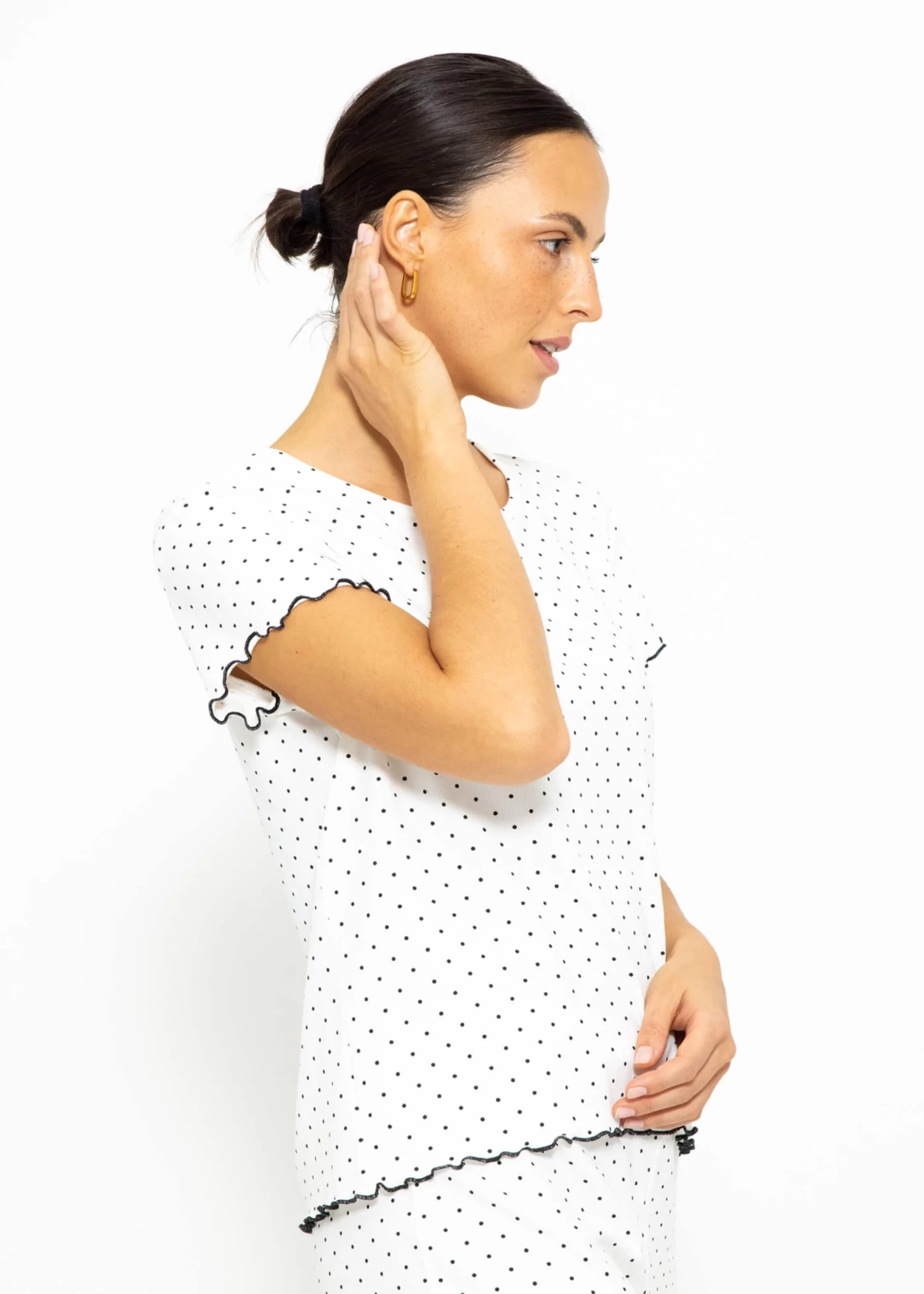 Kurzarm Schlafshirt mit Pünktchen in Weiß