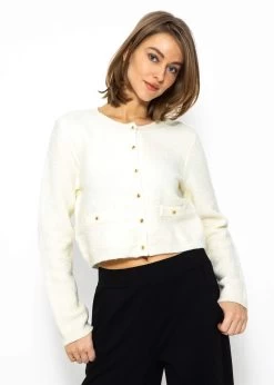 Verleihe deinem Stil eine individuelle Note mit dieser kurzen Jacke. Die lockere Passform sorgt für bequemen Tragekomfort, während die durchgehende Knopfleiste und die beiden Ziertaschen das Design mit zeitloser Eleganz abrunden. Das strukturierte Muster verleiht der Jacke eine modische Ausstrahlung und ein schickes Erscheinungsbild. Ob lässig kombiniert mit Jeans oder als feminines Highlight über einem Kleid – diese Jacke ist vielseitig einsetzbar.