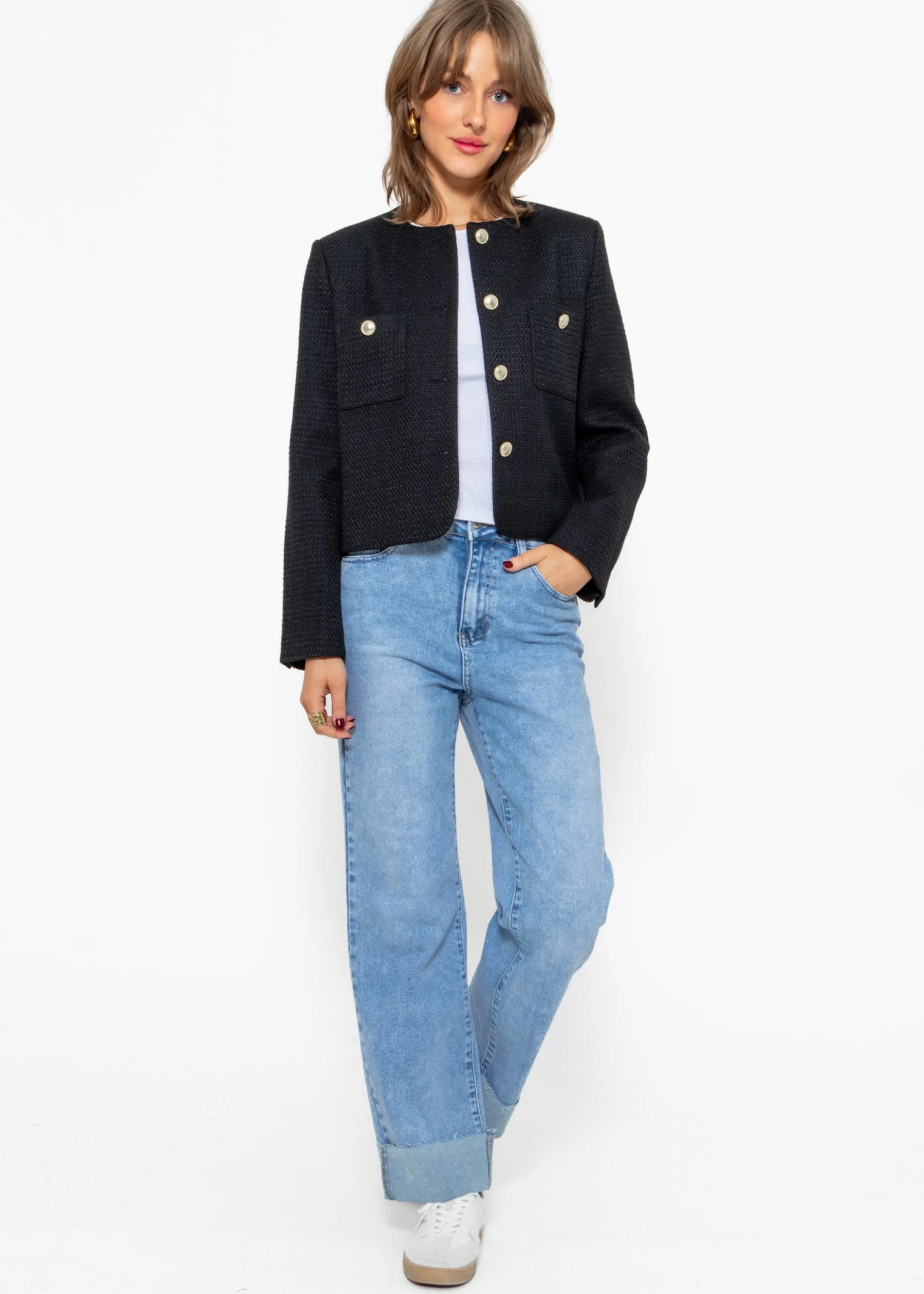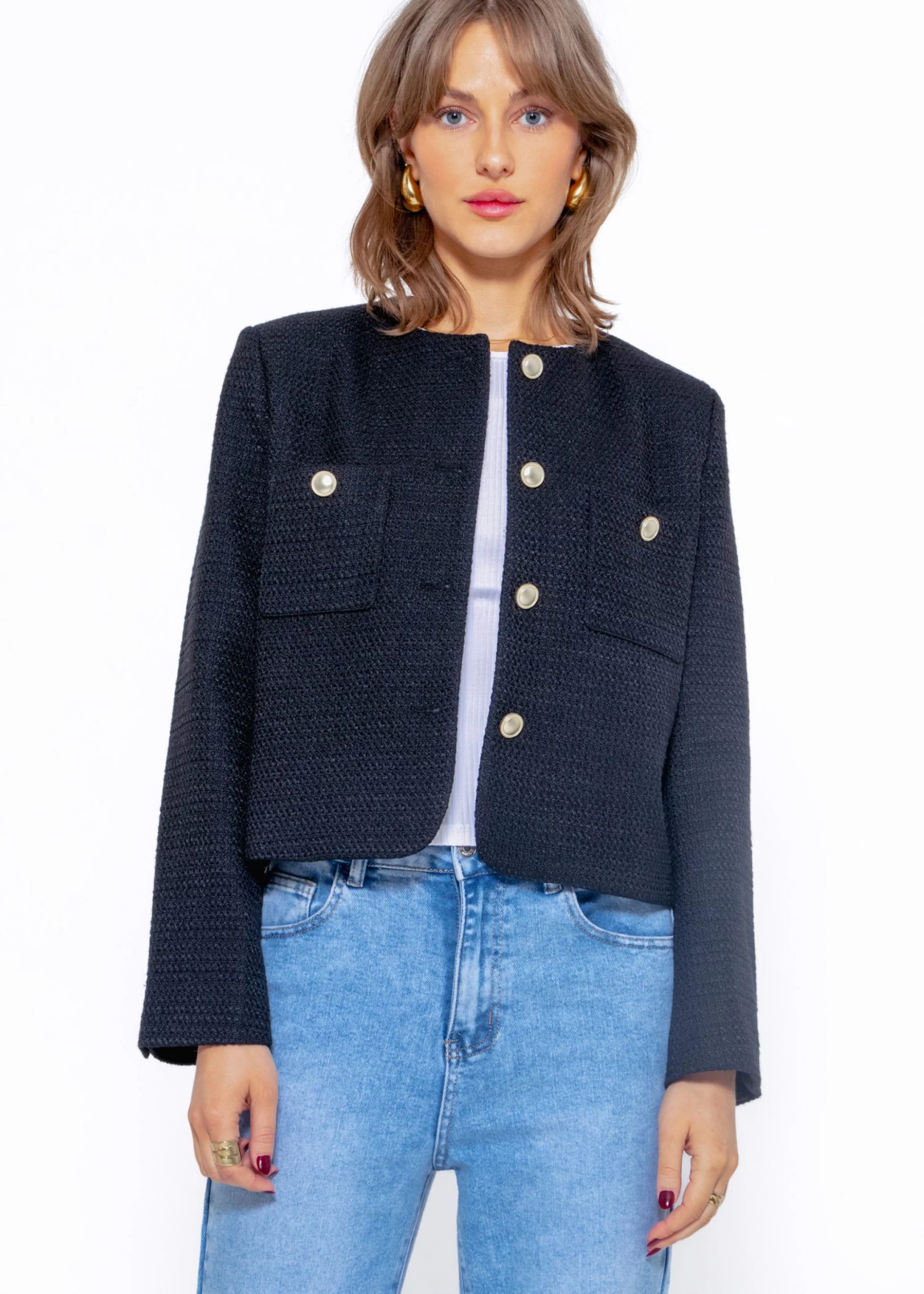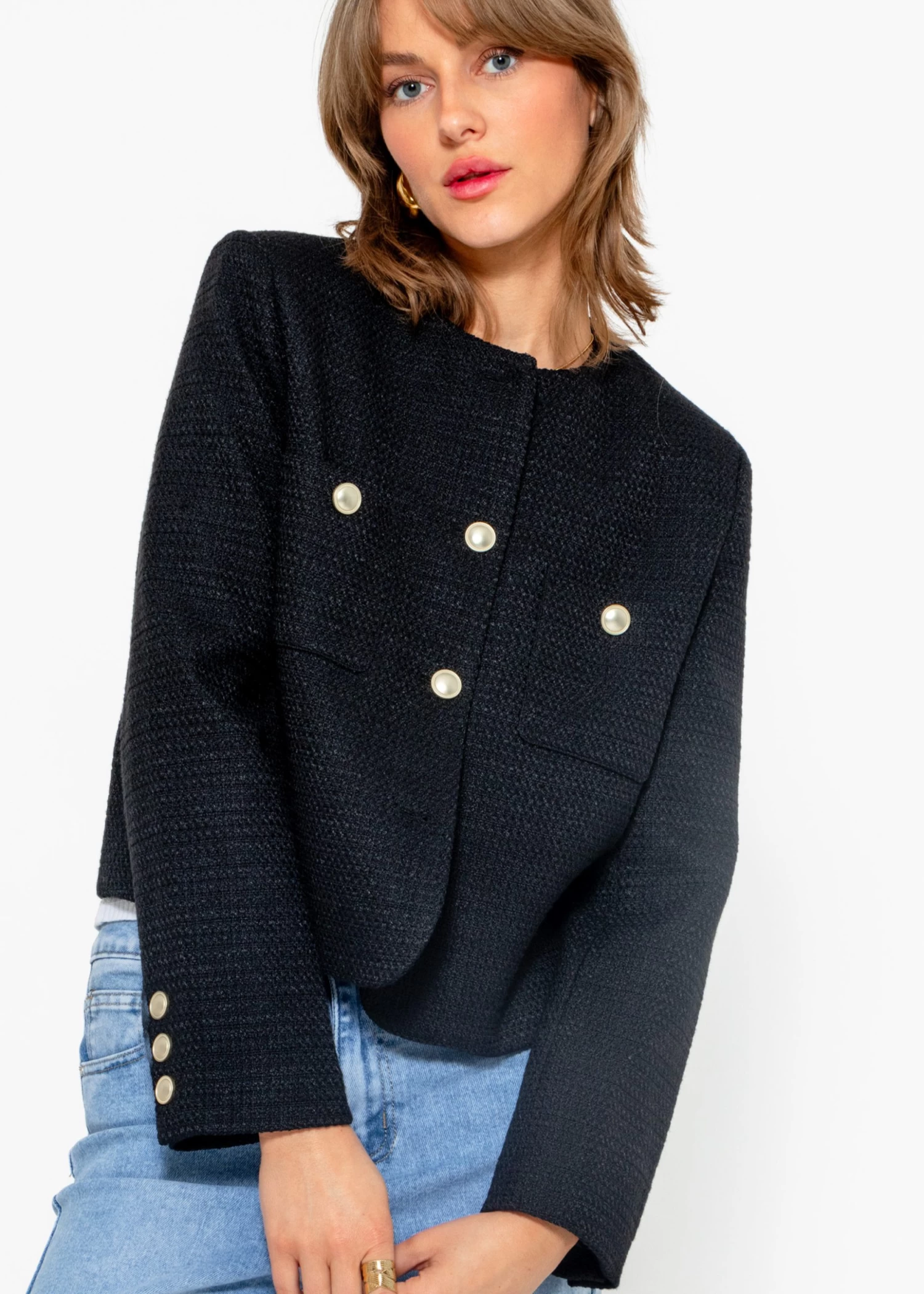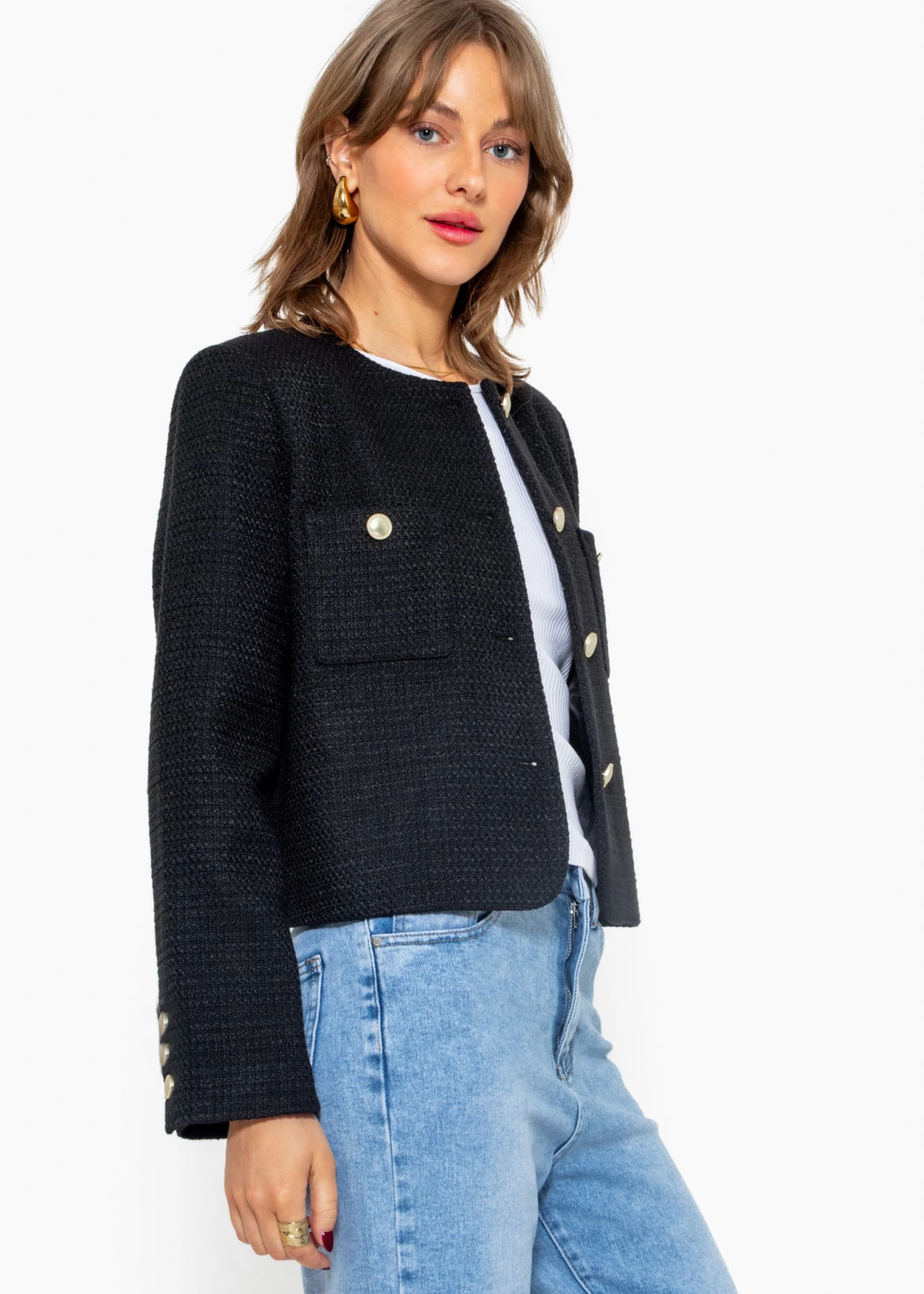 Kurze Jacke mit goldfarbenen Knöpfen in Schwarz