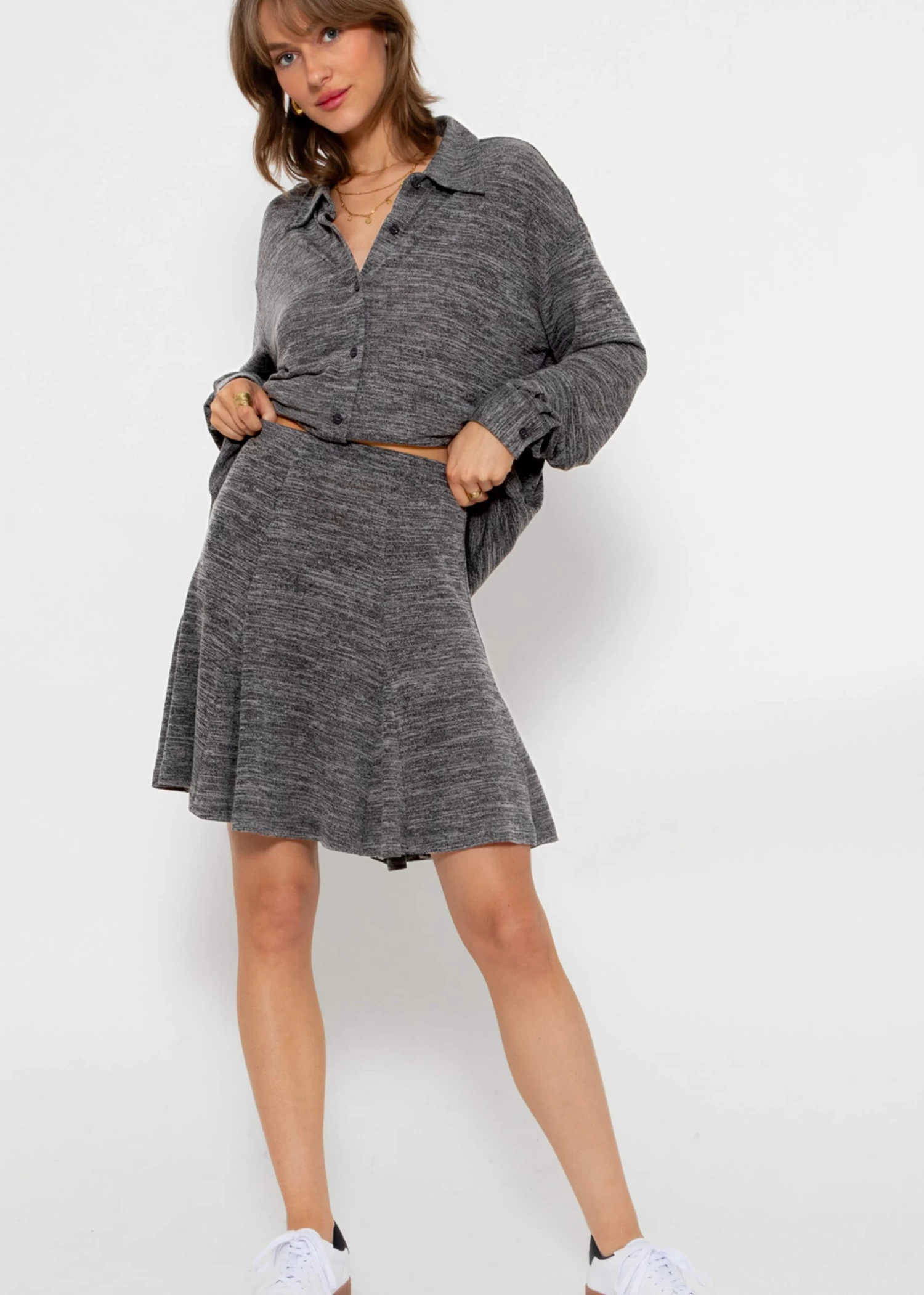 Kurzer Jerseyrock in Dunkelgrau melange