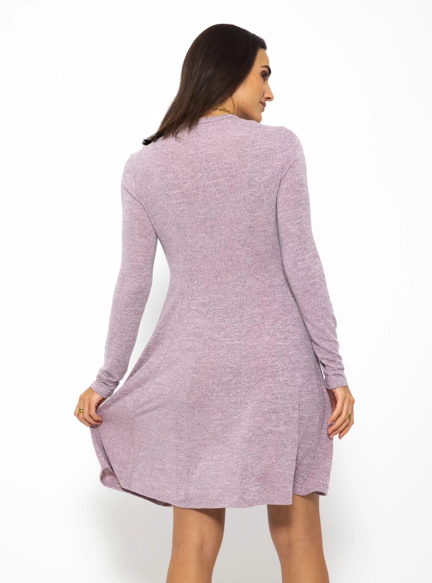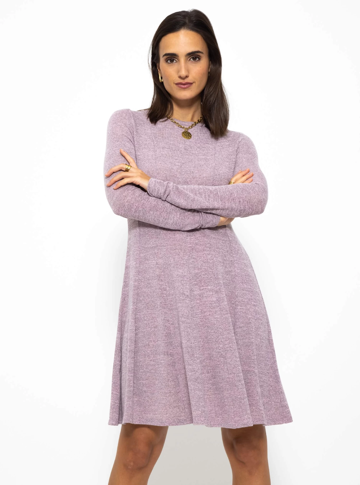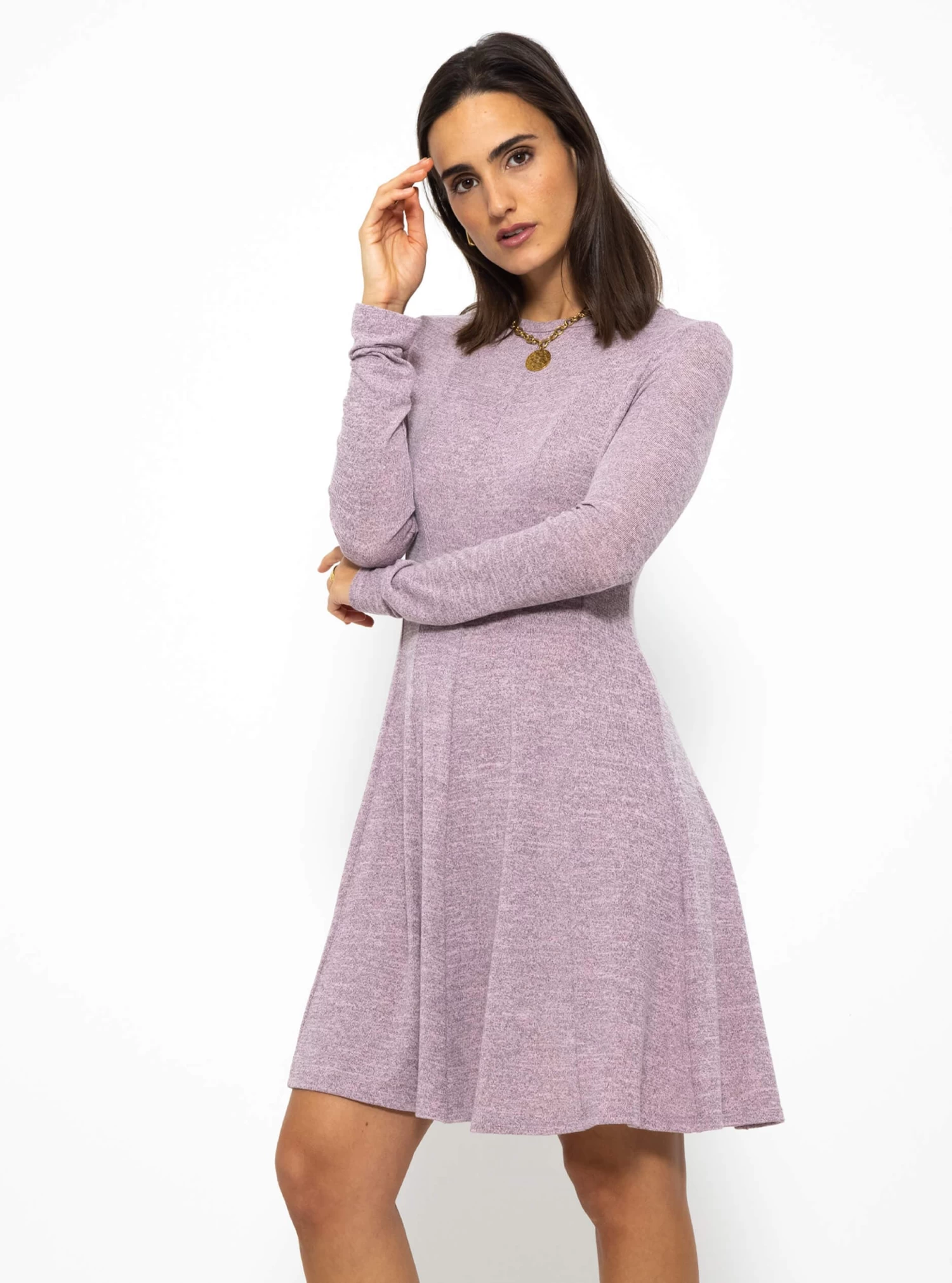 Entdecke den perfekten Kompromiss zwischen Komfort und Stil. Dieses weiche Jerseykleid besitzt eine kurze Länge, einen Rundhalsausschnitt sowie lange Ärmel. Das Modell verfügt über schmeichelhafte Teilungsnähte, die deine Silhouette vorteilhaft betonen und zusätzlich eine modische Note sowie Struktur verleihen. Das Kleid zeichnet sich durch seine oben anliegende und nach unten hin ausgestellte Passform aus, die Bewegungsfreiheit und Bequemlichkeit garantiert, ohne dabei auf Eleganz zu verzichten. Trage das Kleid Solo oder mit einem schicken Cardigan oder einer coolen Jacke.