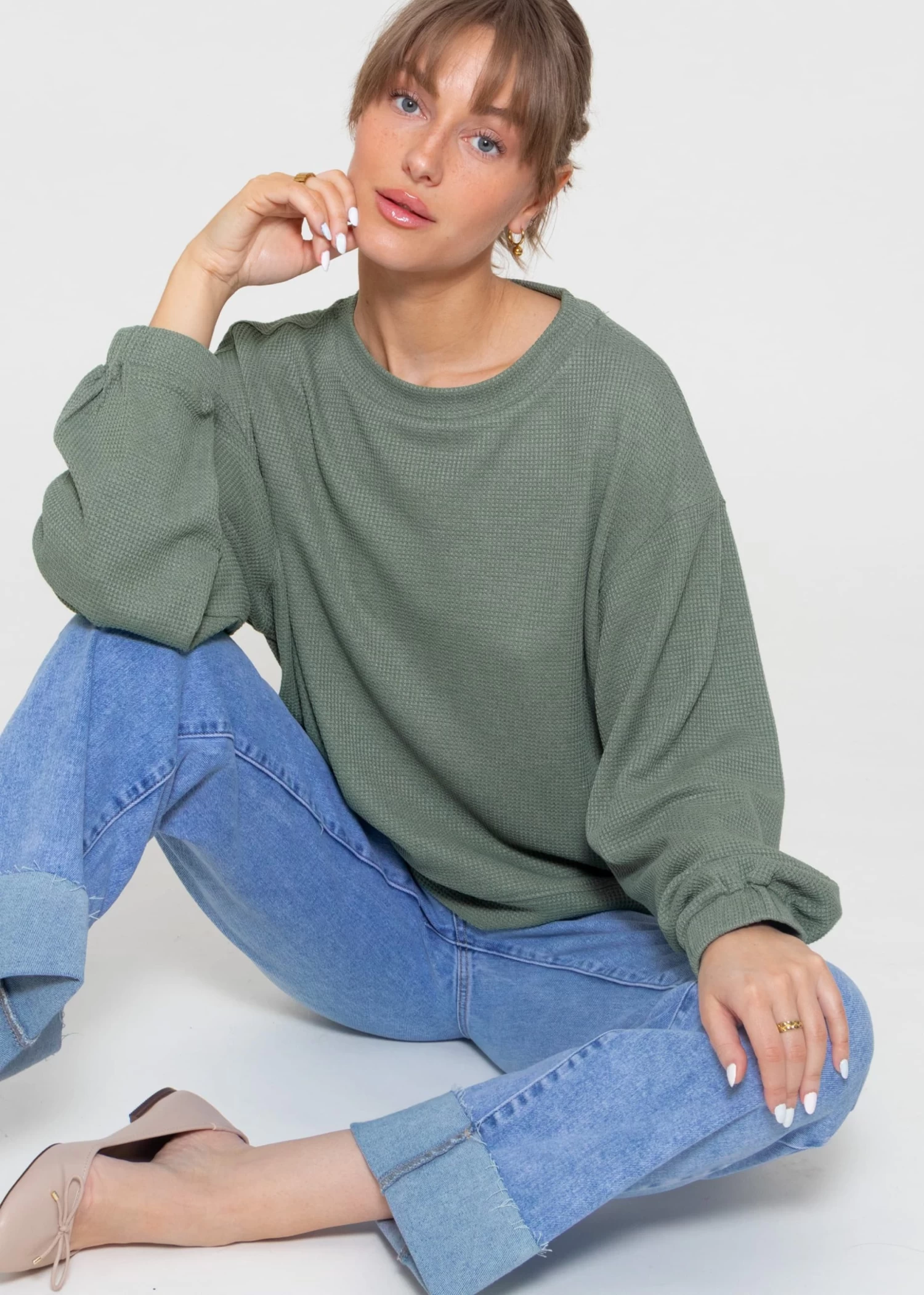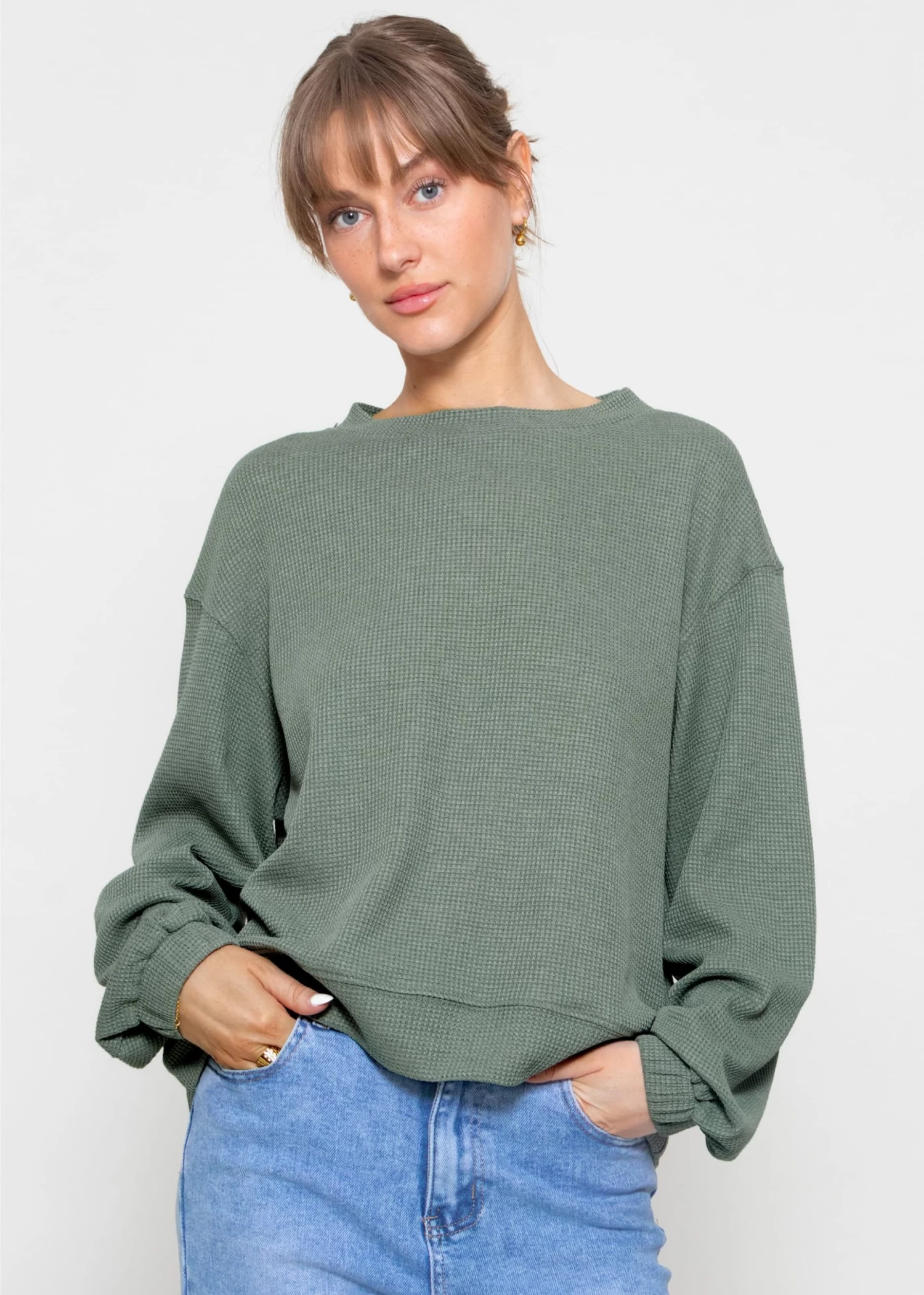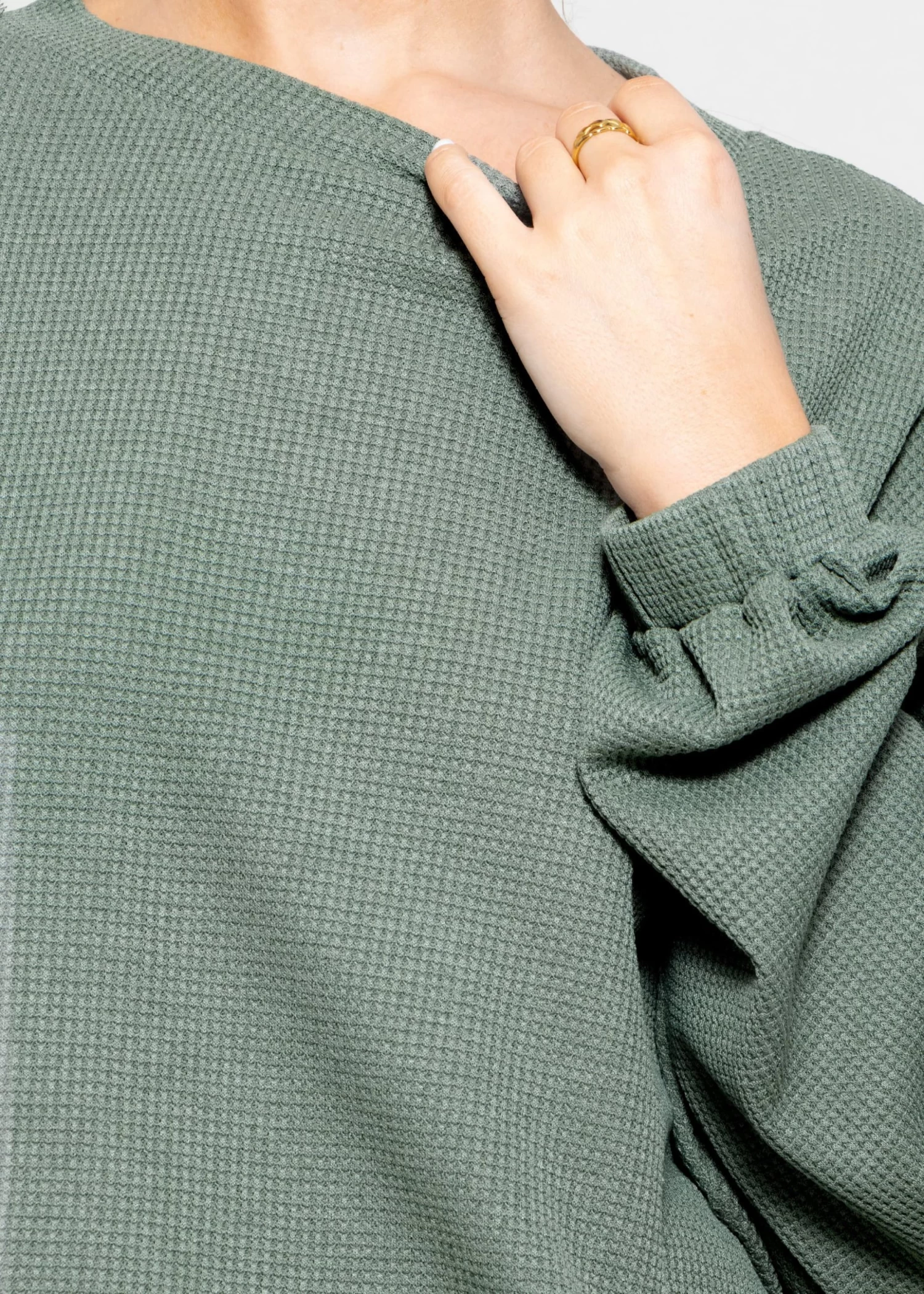 Langarmshirt in Waffelpiqué in Grün