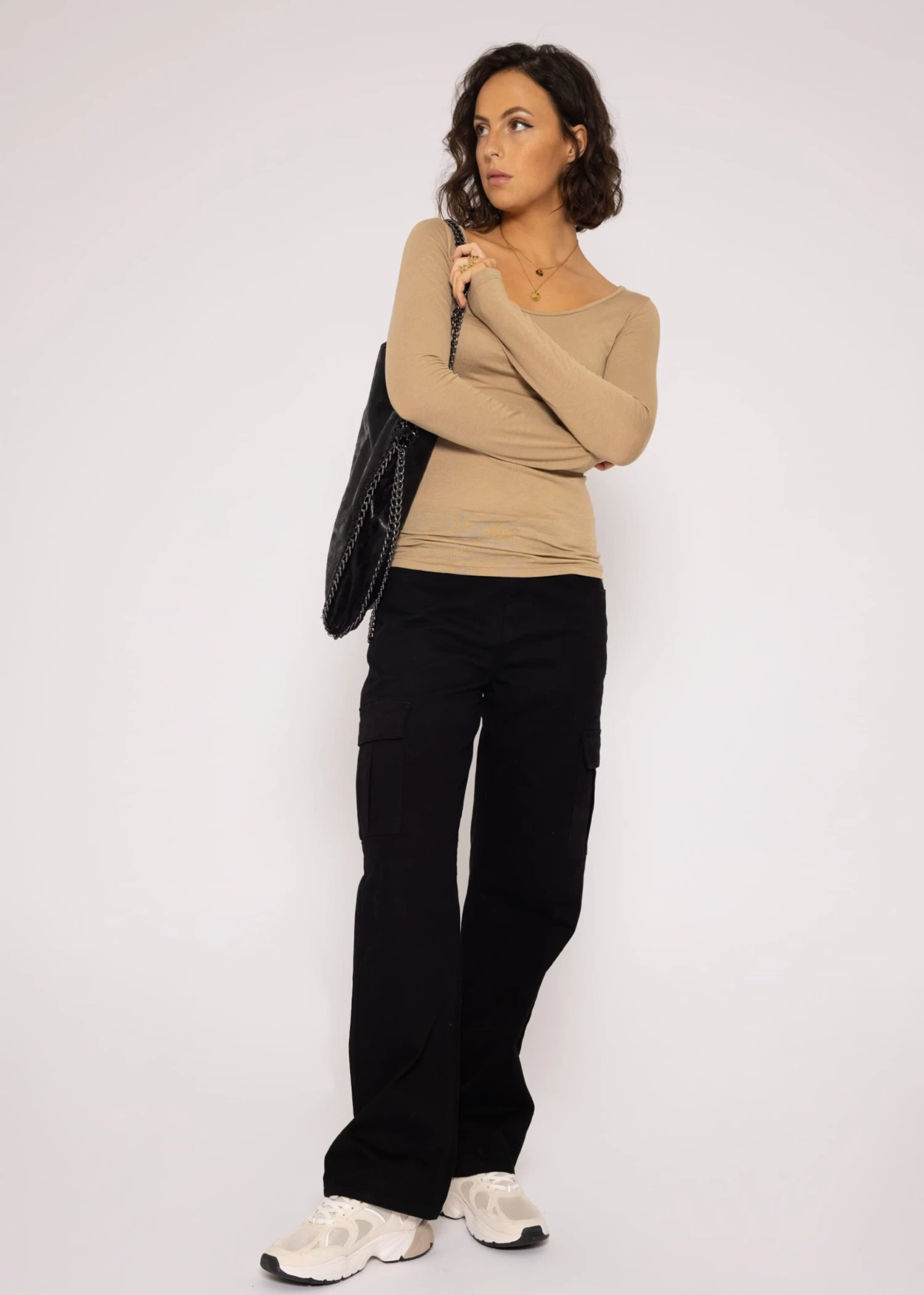 Langarmshirt mit tiefem Ausschnitt in camel