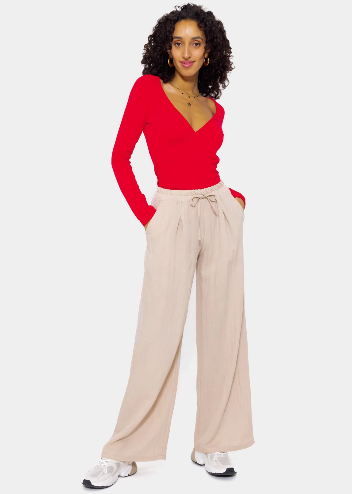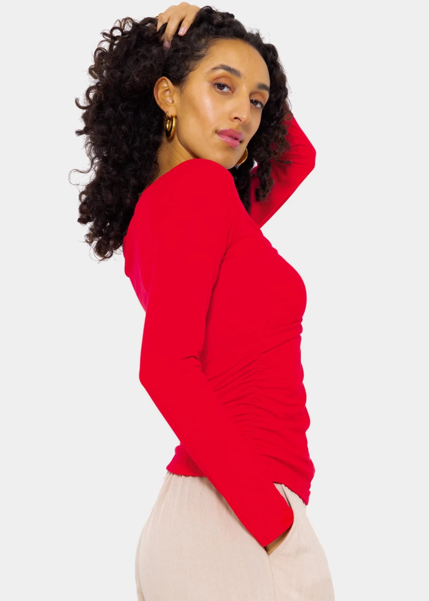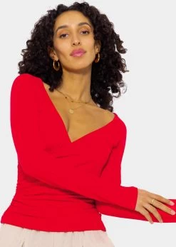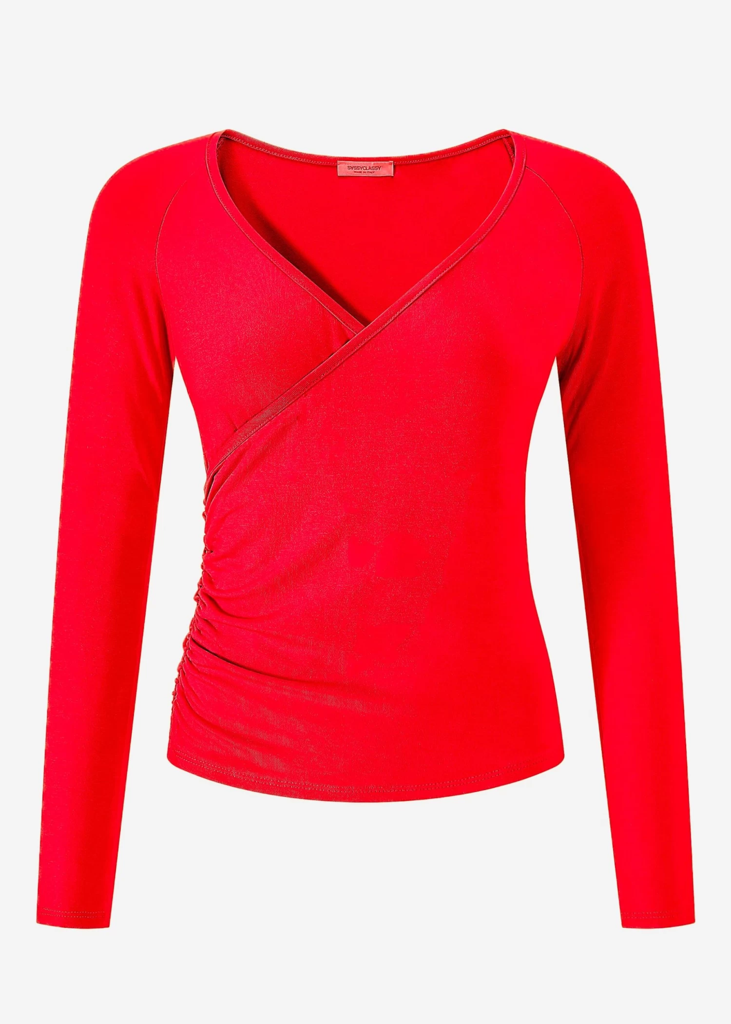 Dieses Langarmshirt präsentiert einen verführerischen V-Ausschnitt, der deine Silhouette schmeichelhaft betont. Die Wickel-Optik fügt dem Design eine subtile Raffinesse hinzu, die für einen Hauch von Weiblichkeit und Dynamik sorgt. Die anliegende Passform schmiegt sich sanft an deine Konturen an, während die seitliche Raffung eine feminine Note hinzufügt. Hergestellt aus elastischer Viskose verspricht dieses Modell höchsten Tragekomfort und optimale Bewegungsfreiheit. Ob für einen lässigen Tag im Büro oder einen schicken Abend in der Stadt, dieses Shirt ist die perfekte Wahl.
