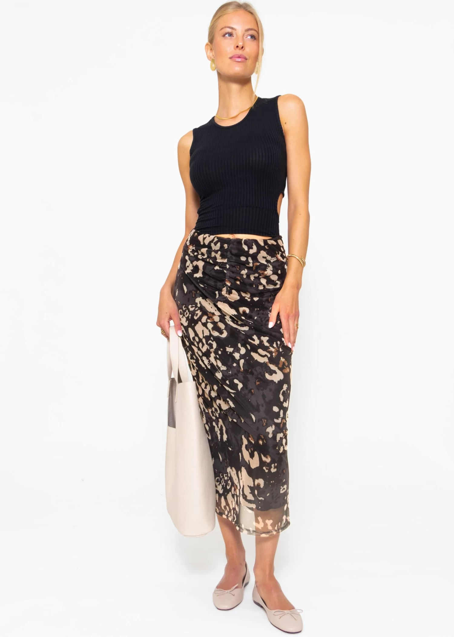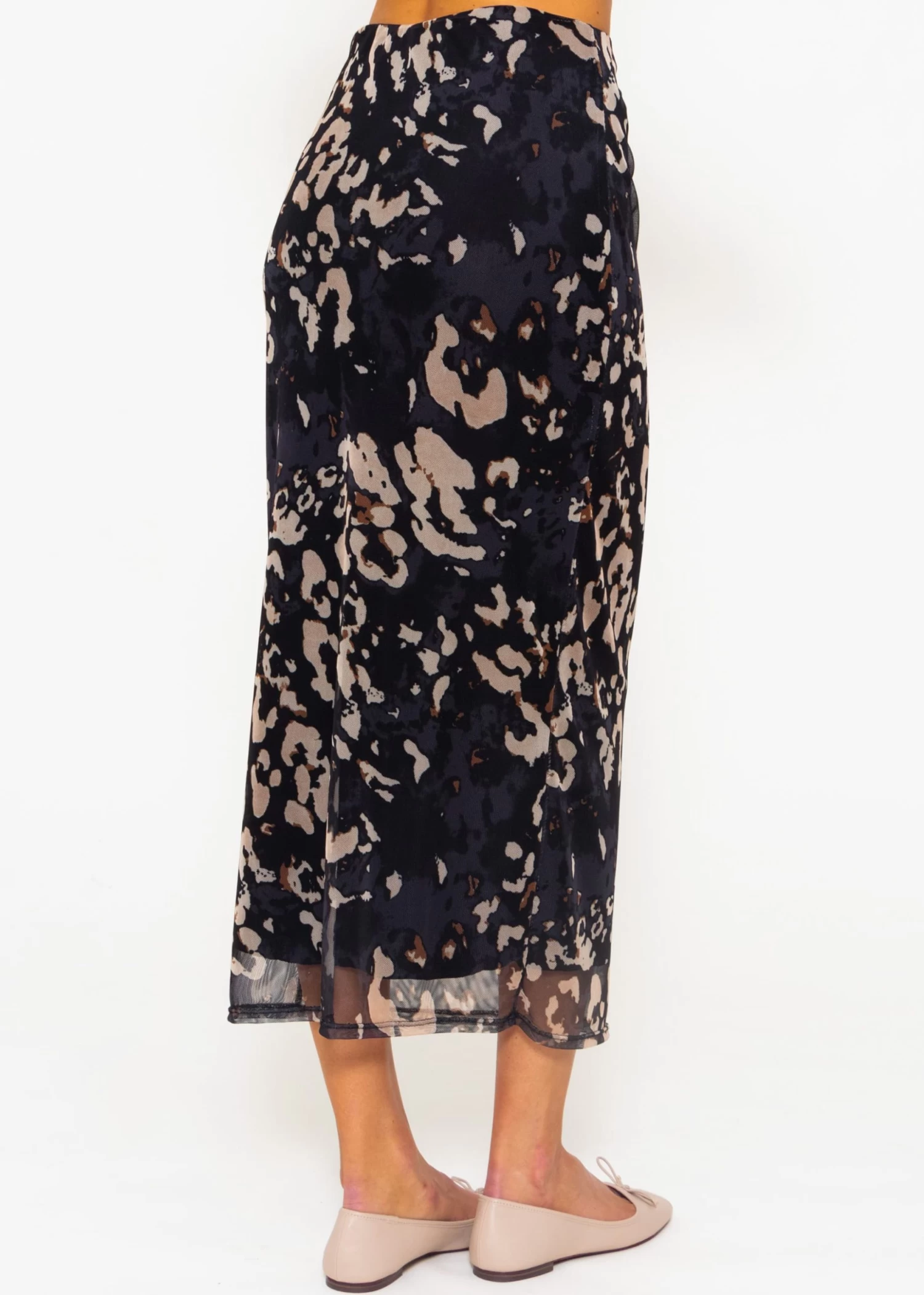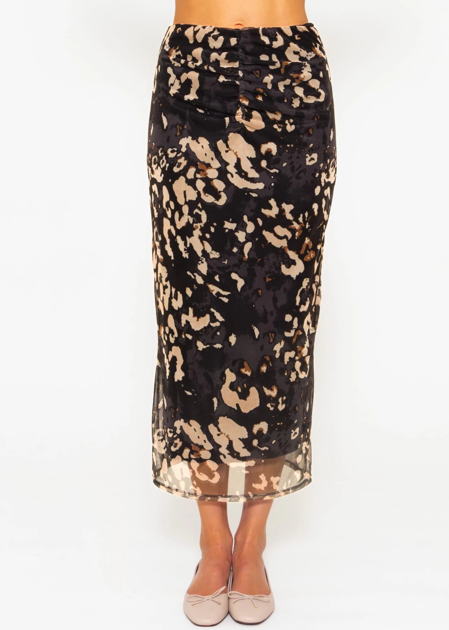 Langer Mesh Rock mit Leoprint in Schwarz-Beige