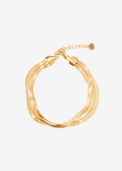 Dieses Armband zeichnet sich durch seine feinen, einzelnen Gliederketten aus, die miteinander verbunden sind und eine dynamische, fließende Form erzeugen. Das Modell besitzt einen Karabinerverschluss, der garantiert, dass das Armband sicher am Handgelenk bleibt. Das Armband ist ein vielseitiges Accessoire, das dir zu jedem Anlass einen glänzenden Akzent verleiht.
