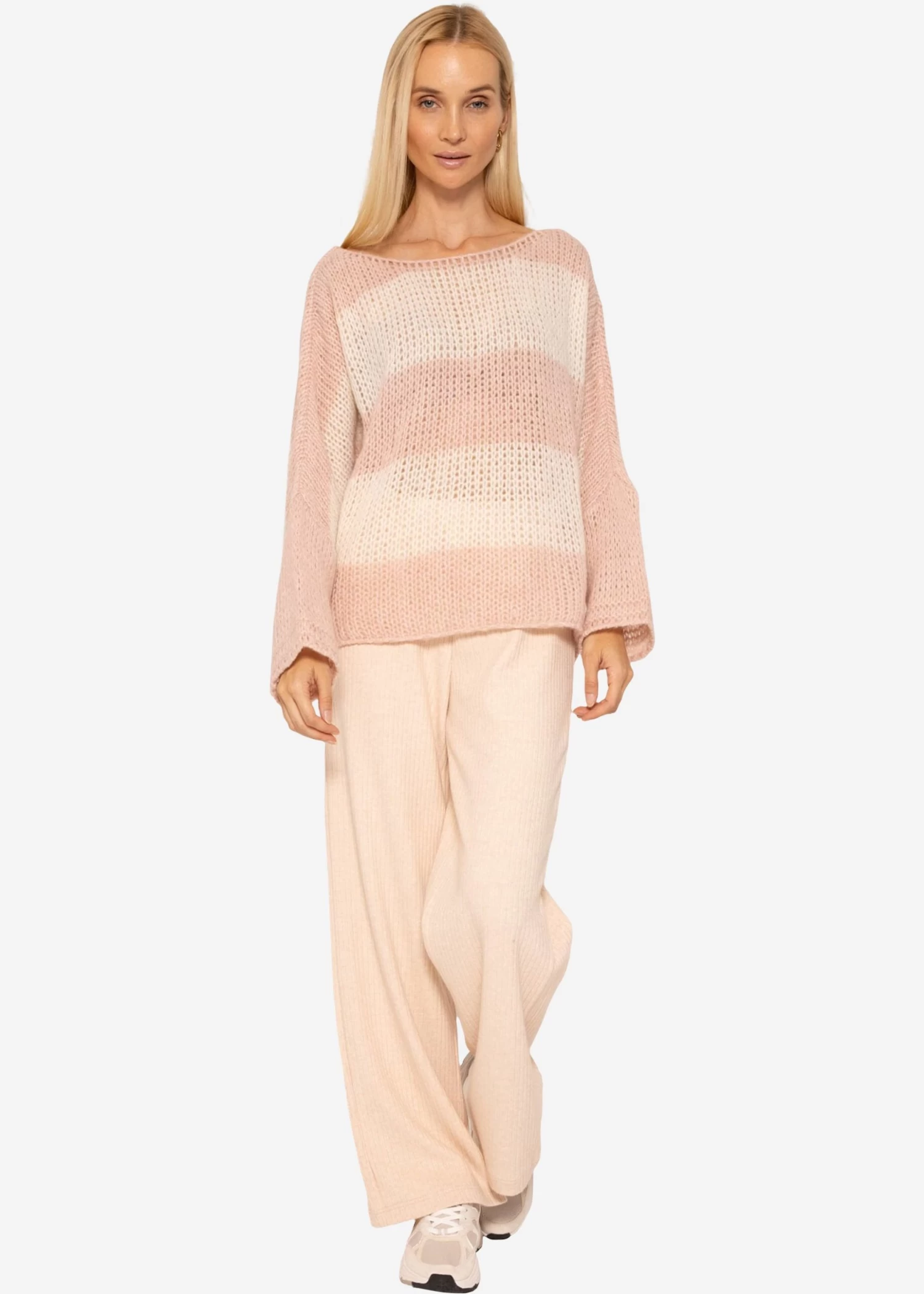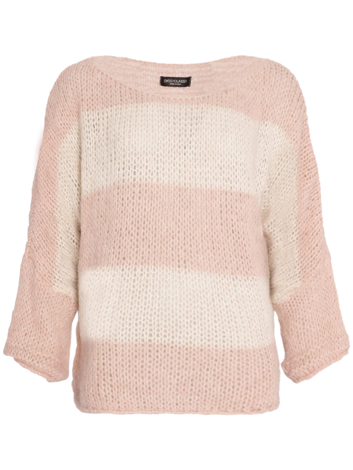 Locker gestrickter oversize Pullover in rosa-offwhite