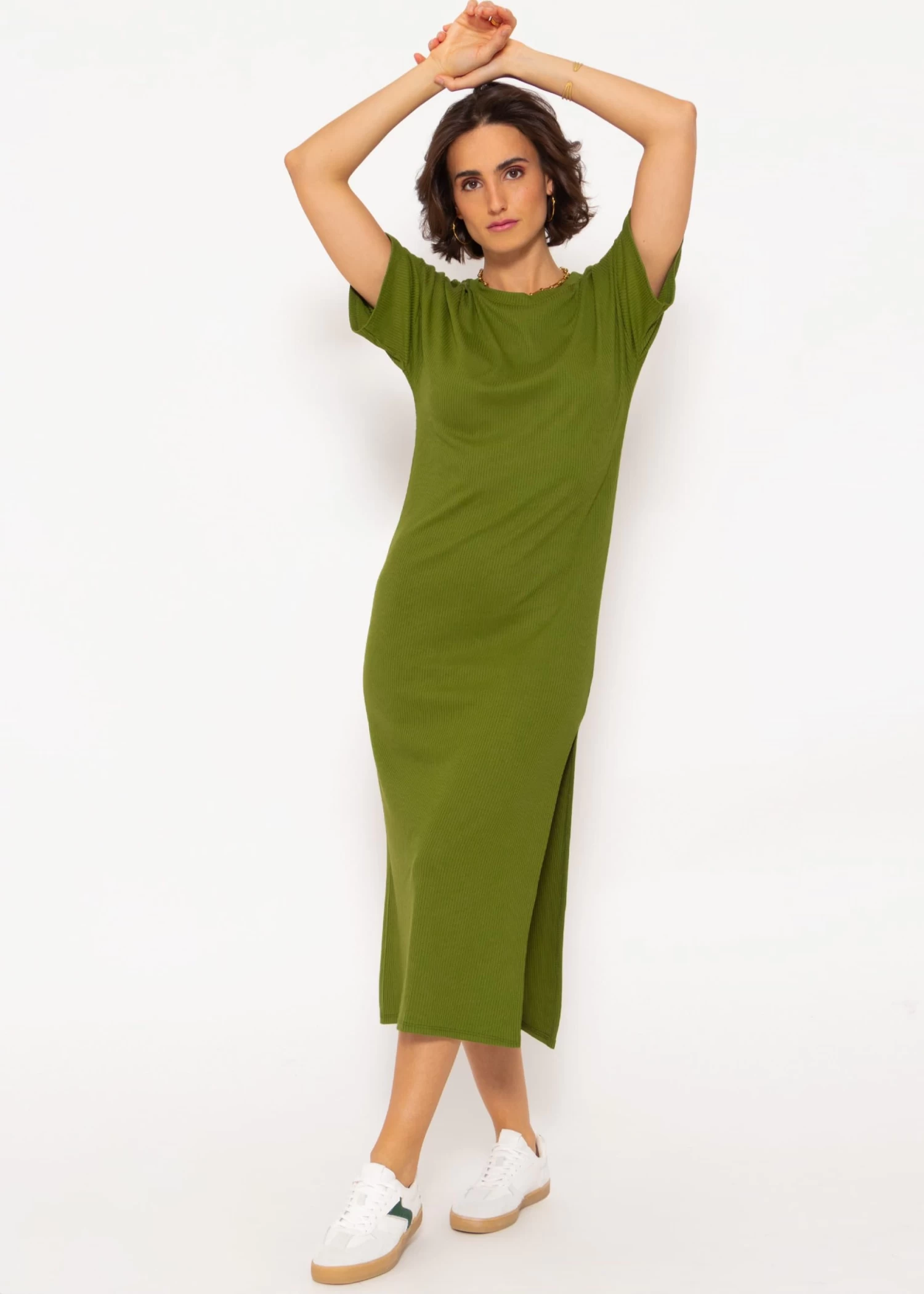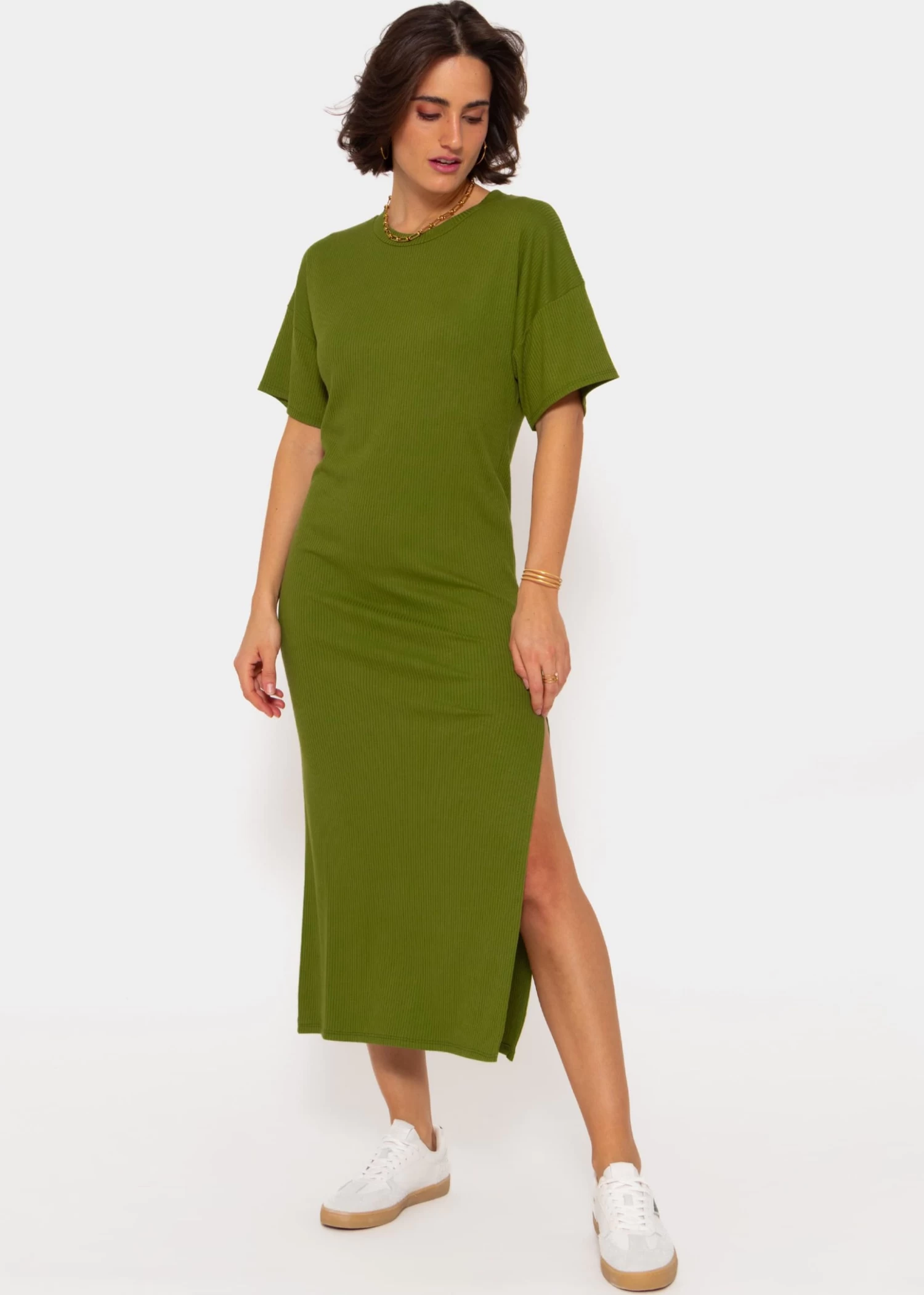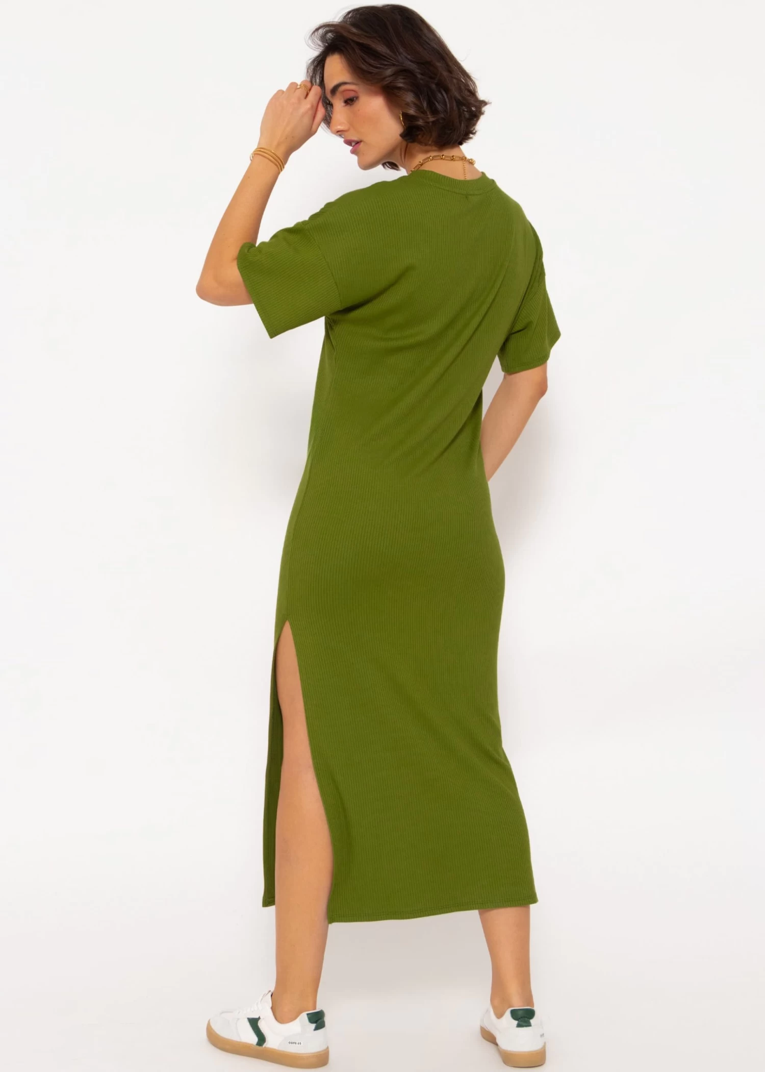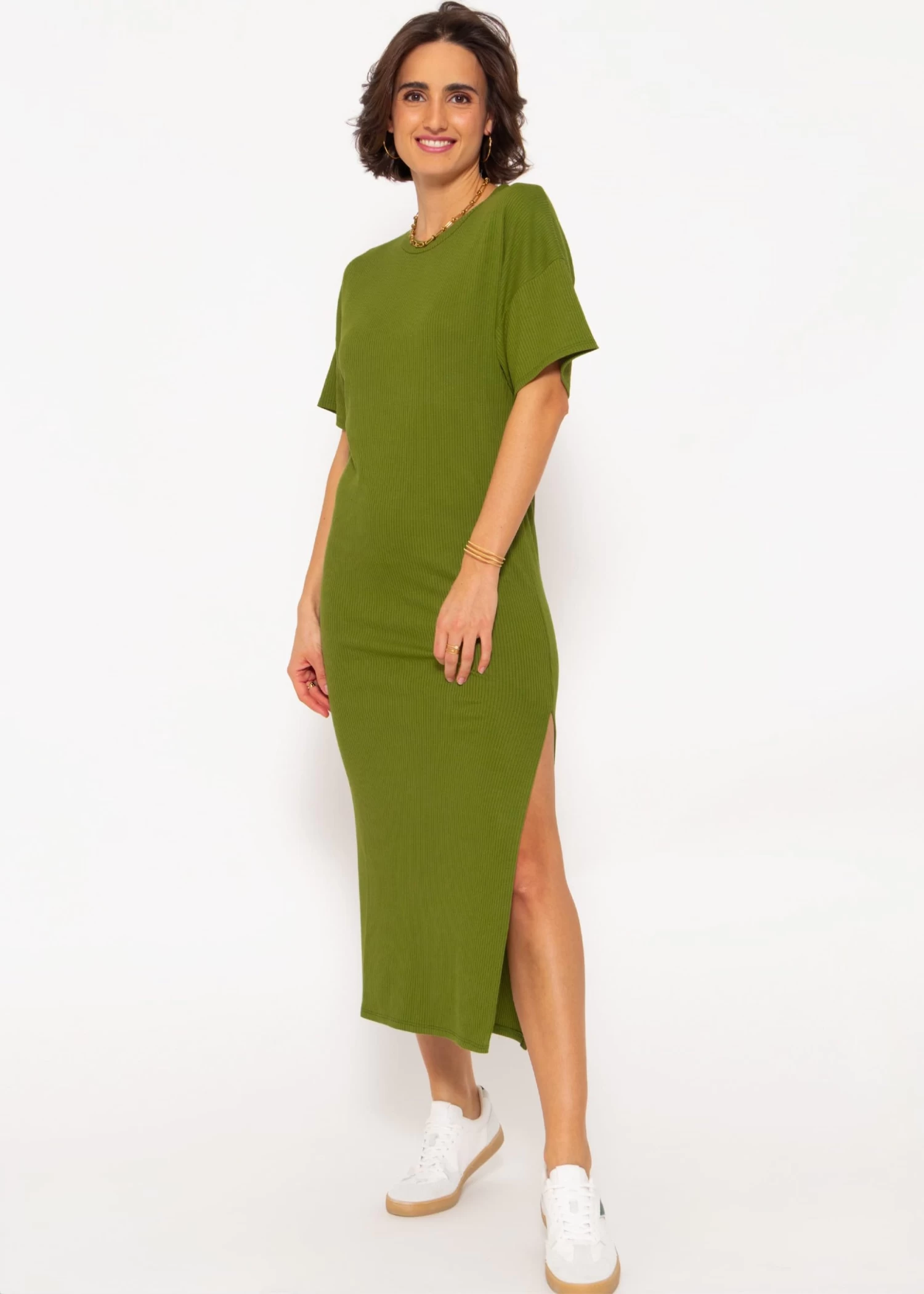 Maxi Rip Jersey Kleid mit Schlitz in Khaki