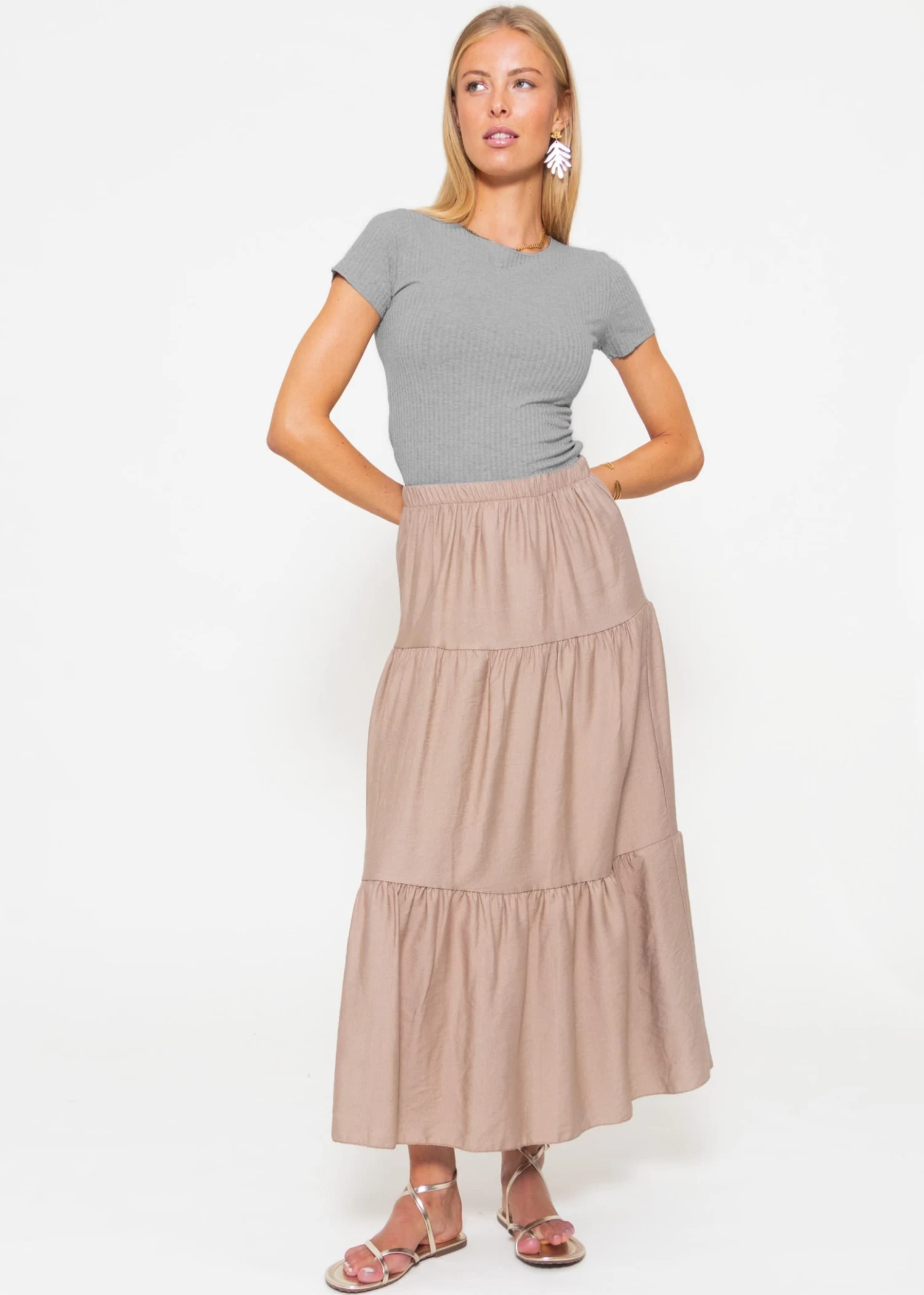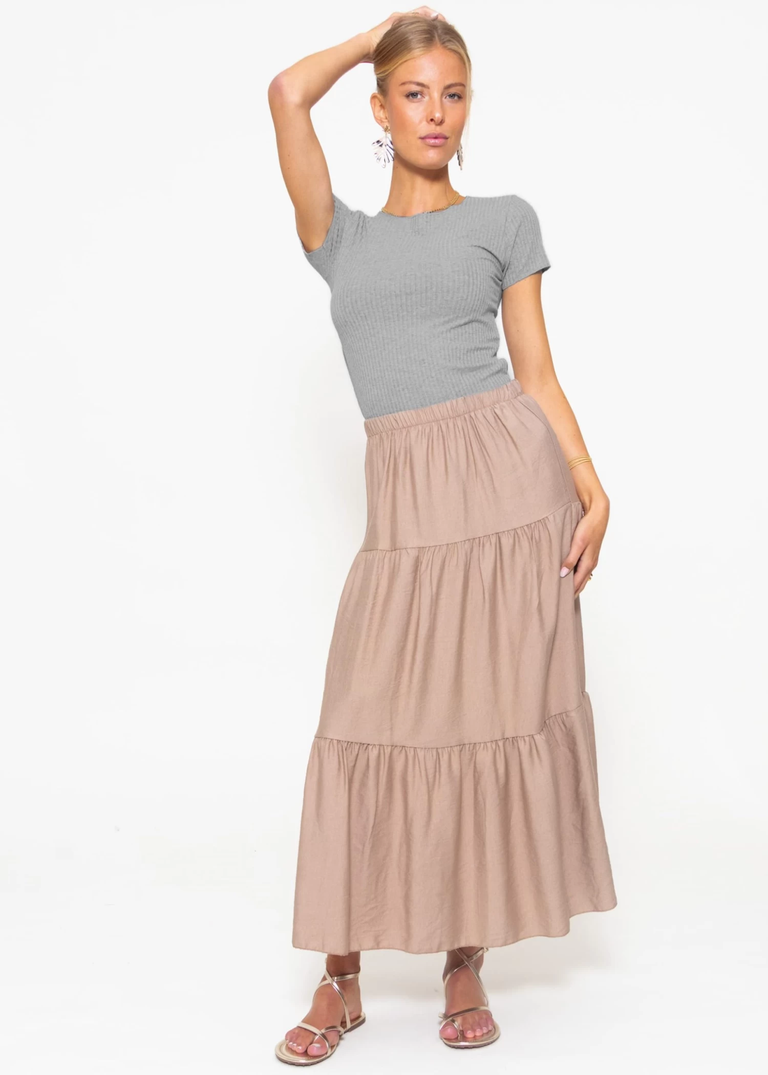 Maxi Volantsrock in Taupe
