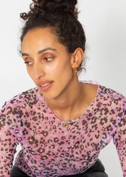 Mesh Langarmshirt mit Leo-Print in Rosa