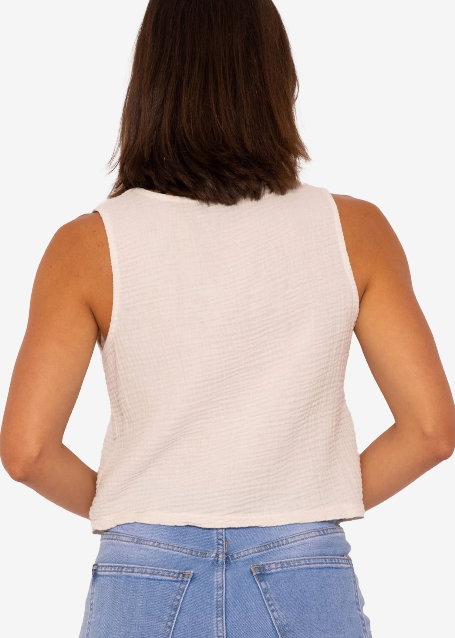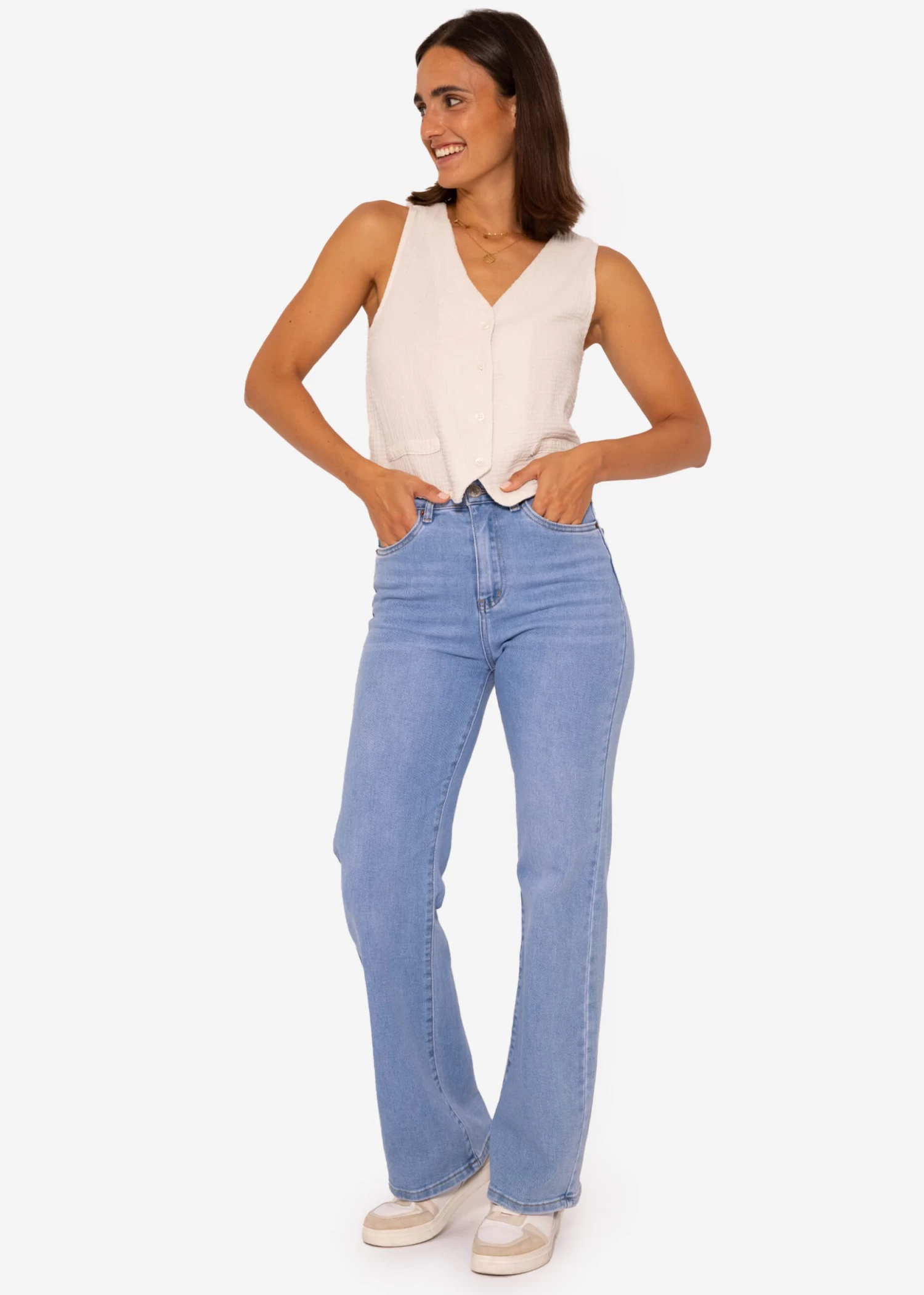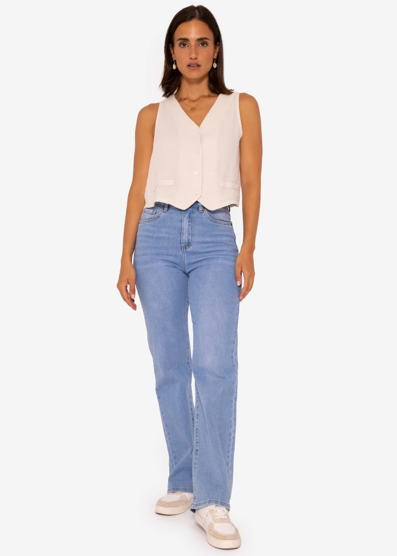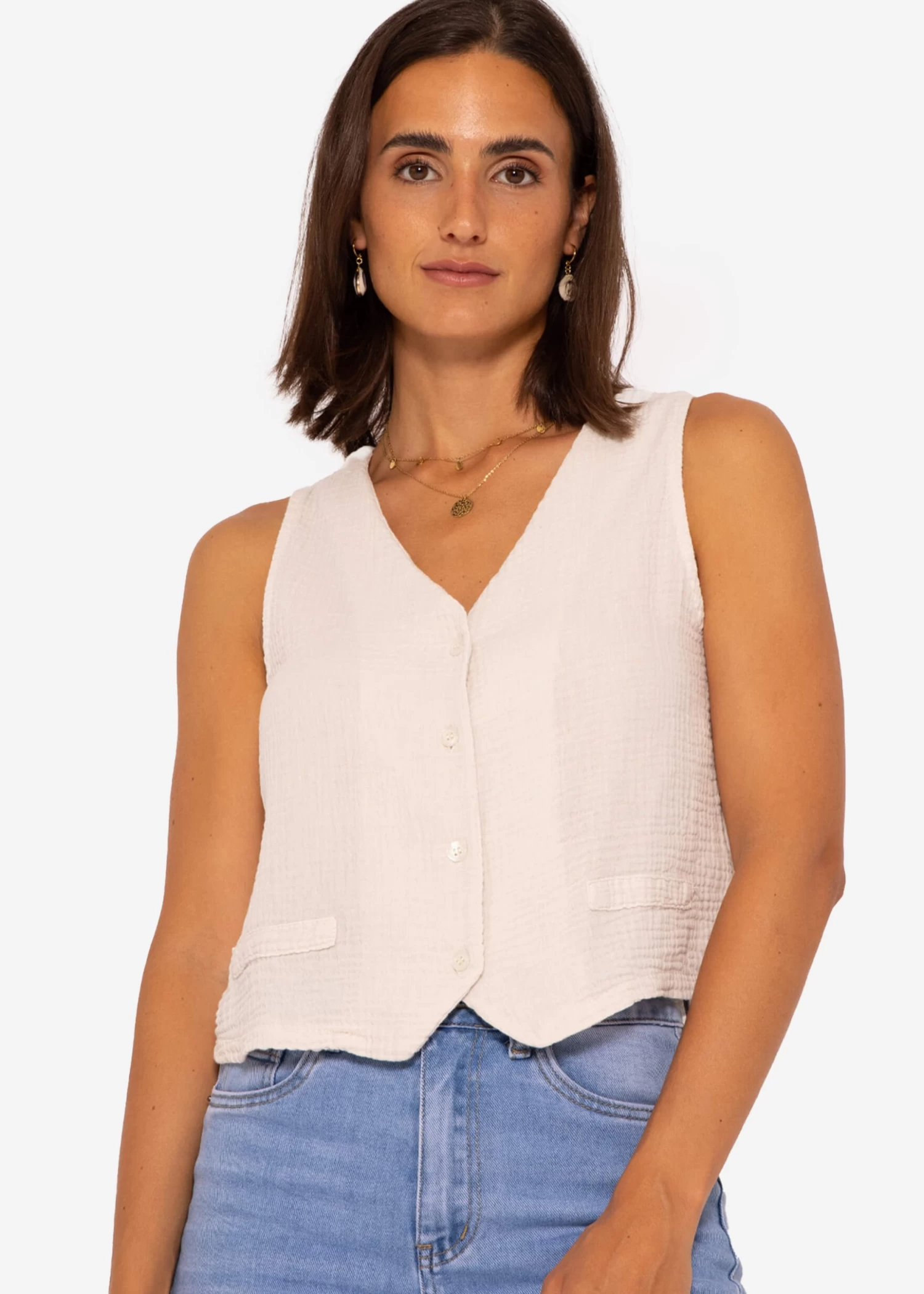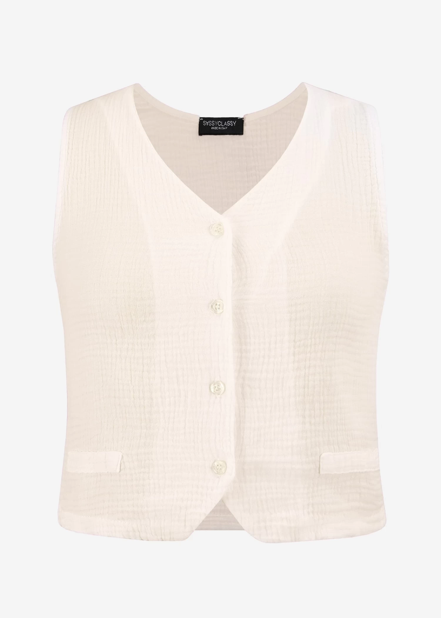 Diese Anzugweste ist ein zeitloses Kleidungsstück, das deinem Outfit eine gehobene Note verleiht. Hergestellt aus hochwertigem Musselin, überzeugt sie durch ihre hervorragende Qualität und edle Ausstrahlung. Das Modell besitzt einen charmanten V-Ausschnitt, ein ärmelloses Design sowie eine Knopfleiste. Durch seine lockere, aber nicht zu weit geschnittene Passform, garantiert die Anzugweste den perfekten Sitz und wird zum absoluten Wohlfühlpiece. Ziertaschen vervollständigen das Design und tragen zur Ästhetik bei. Mit ihrer klassischen Erscheinung und raffinierten Details ist sie ein unverzichtbares Stück in deiner Garderobe.