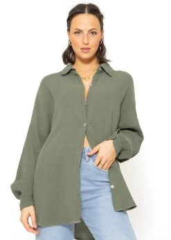 In dieser Bluse werden klassische Elemente mit modischen Details vereint. Das Modell kommt im Oversized-Fit mit überschnittenen Schultern sowie langen, weiten Ärmeln und umspielt sanft deine Silhouette. Die Bluse besticht durch ihren geraden und lässig fallenden Schnitt. Zeitlose Akzente werden durch den Kragen, die durchgehende Knopfleiste und die Manschetten an den Ärmeln gesetzt. Die etwas länger gehaltene Rückenpartie sowie der abgerundete Saum vervollständigen das Design.