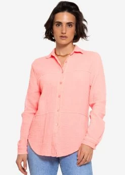 Diese neue Musselinkreation darf diese Saison nicht in deinem Kleiderschrank fehlen. Highlight bilden die subtilen Ziernähte, die ein markantes Designelement erzeugen, das Struktur und Tiefe verleiht. Das Modell besitzt klassische Details, wie Kragen, Knopfleiste und Manschetten an den langen Ärmeln. Die lockere Passform sorgt für eine entspannte Silhouette, während das weiche Baumwoll-Material der Bluse ein angenehmes, leichtes Tragegefühl garantiert. Am Ende der Knopfleiste befindet sich ein dezentes SASSYCLASSY Patch, das für Qualität und Exklusivität steht. Die Musselinbluse lässt sich mühelos in jeden Look integrieren, sei es mit hochgekrempelten Ärmeln und einer casual Hose für einen entspannten Anlass oder in Kombination mit einer schicken Hose für einen professionellen Auftritt.