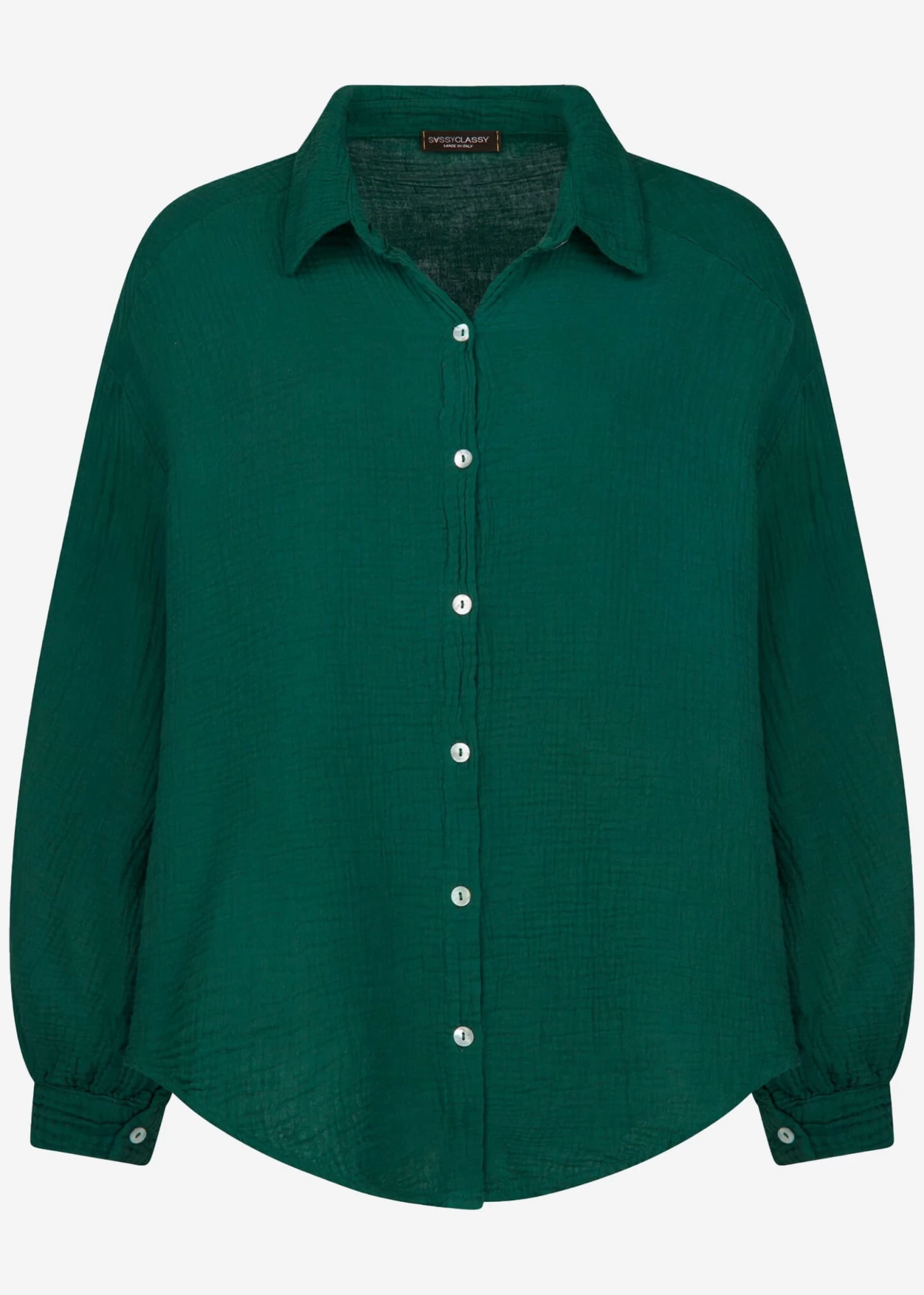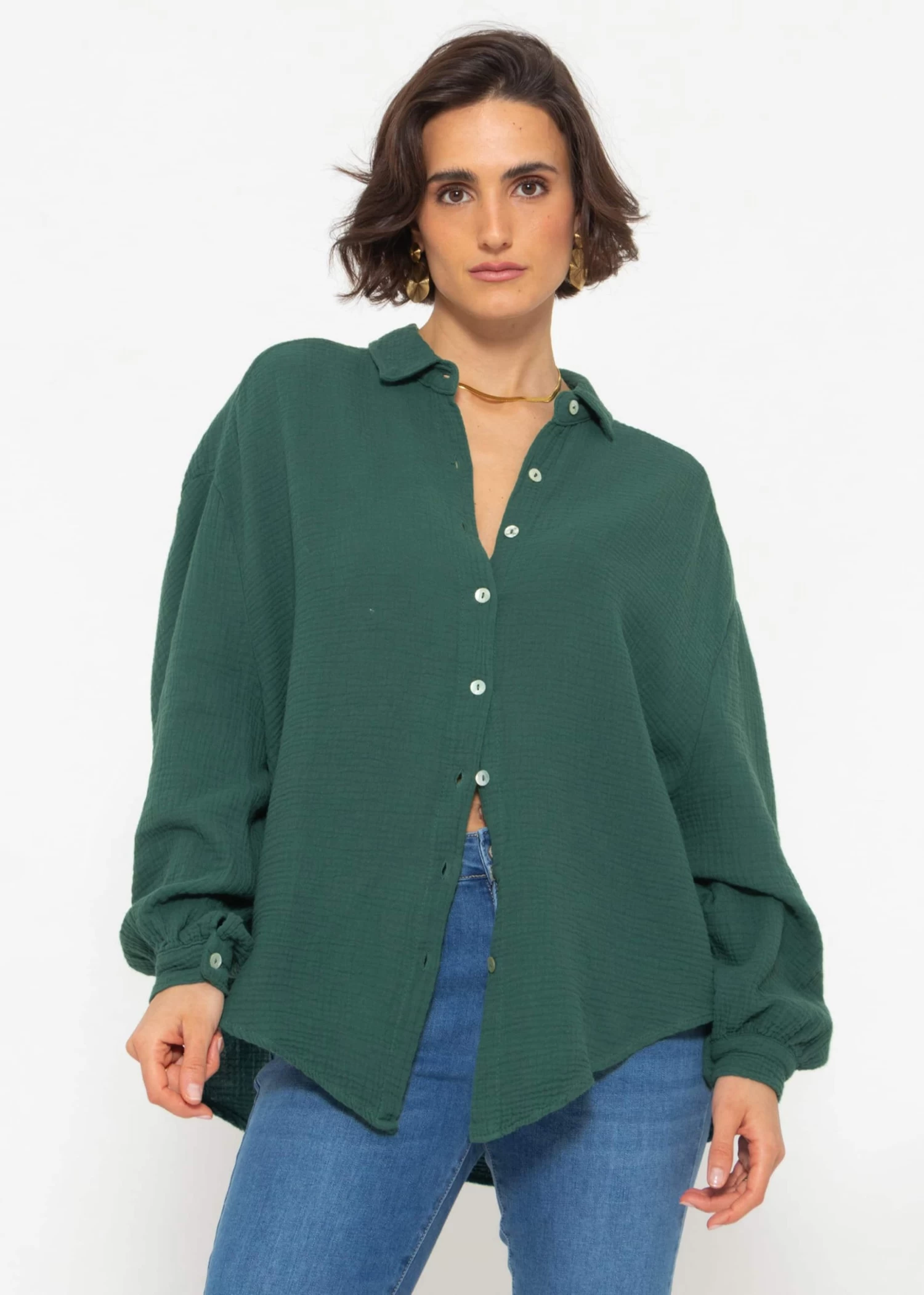 Musselin Bluse oversize, kurz in dunkelgrün